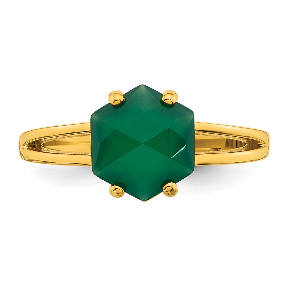 Sterling Silver Gold-tone Polished Hexagon Green Chalcedony Size 6 Ring