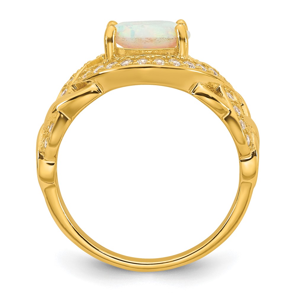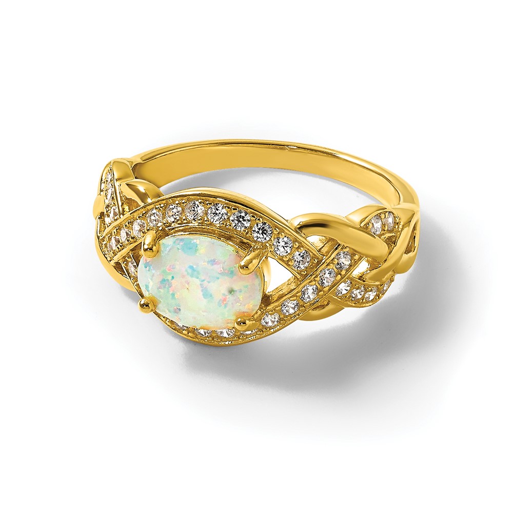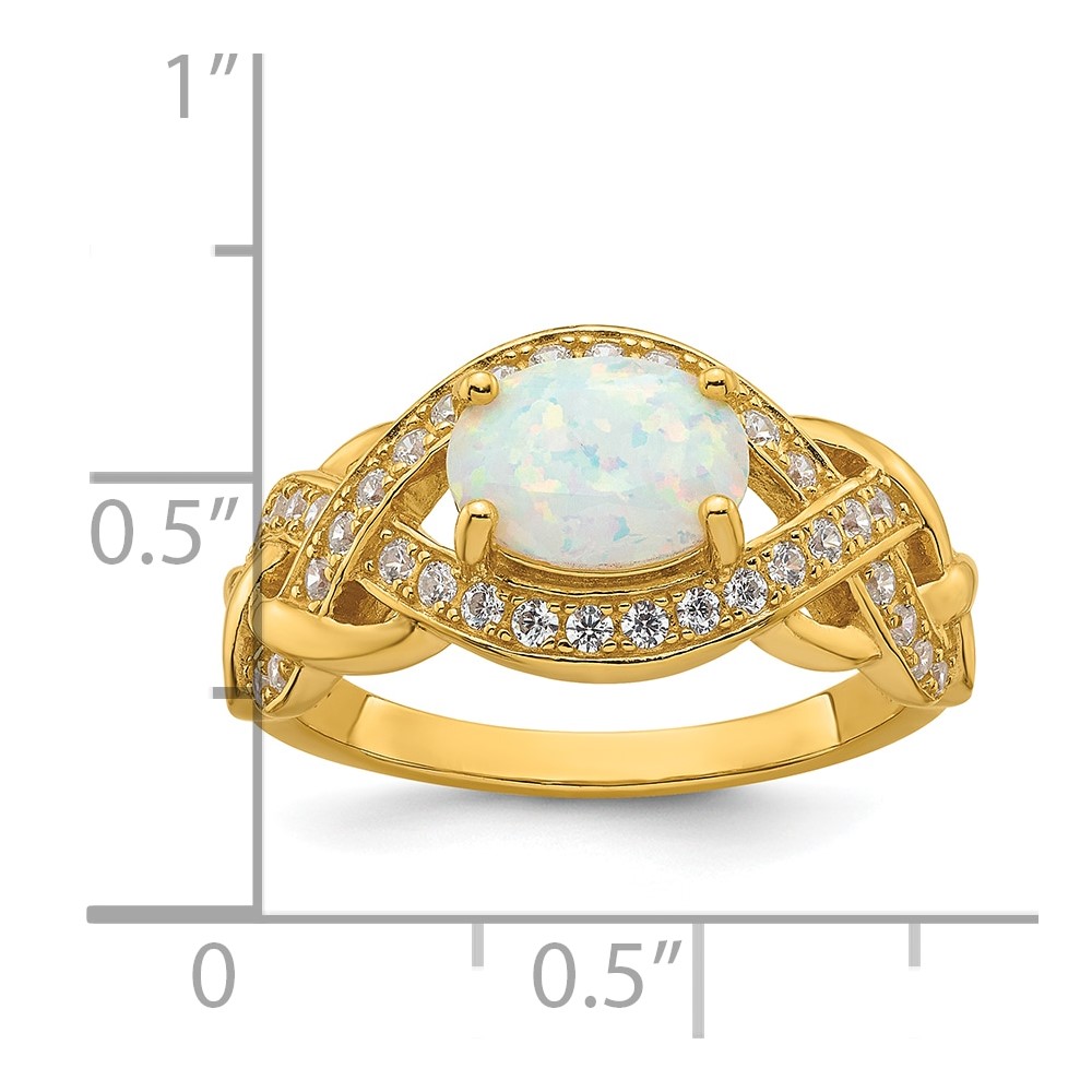 Sterling Silver Gold-tone Polished CZ and Lab Created Opal Size 7 Twisted Ring