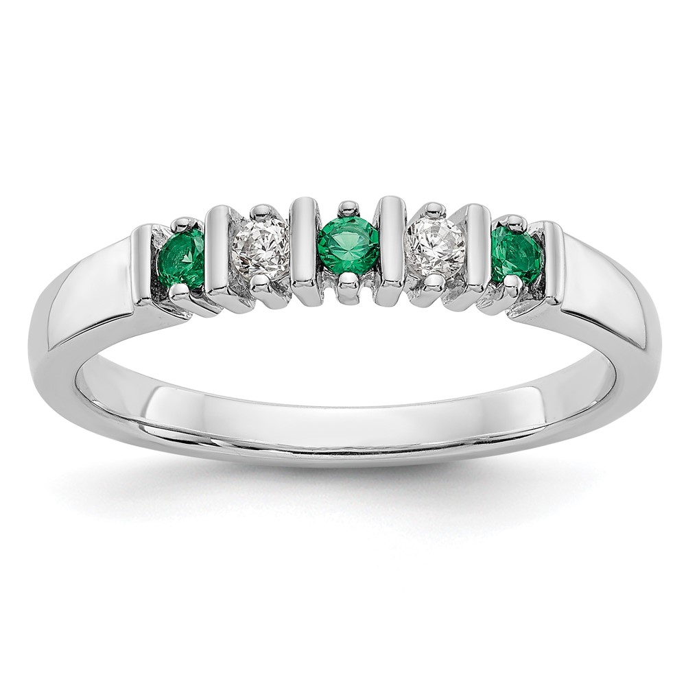 14k White Gold 2mm Emerald AA Diamond 5-Stone Ring