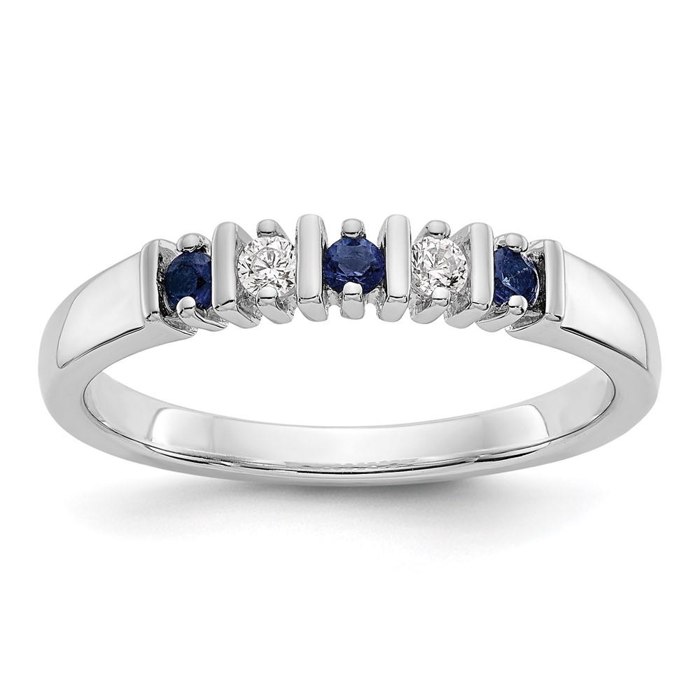 14k White Gold 2mm Sapphire AA Diamond 5-Stone Ring