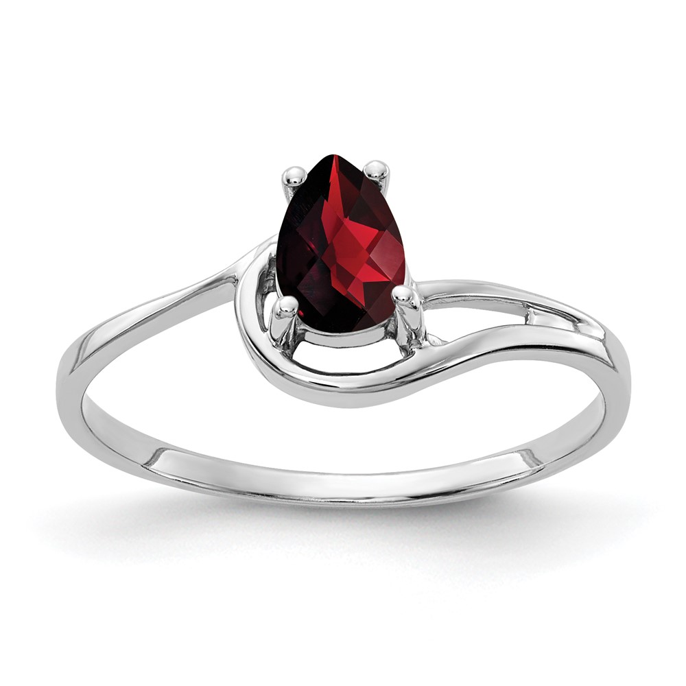 14k White Gold 6x4mm Pear Garnet Checker ring