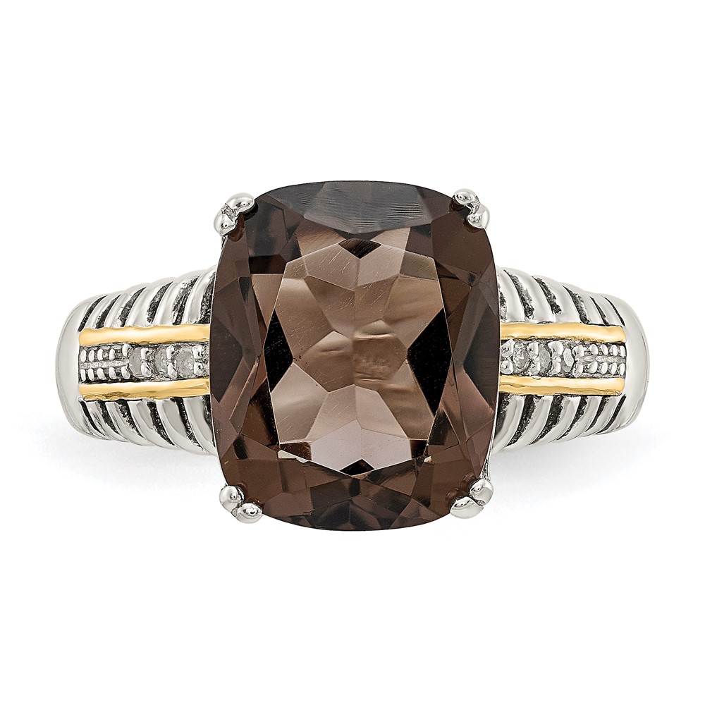 Shey Couture Sterling Silver with 14K Accent Antiqued Cushion Smoky Quartz and Diamond Ring
