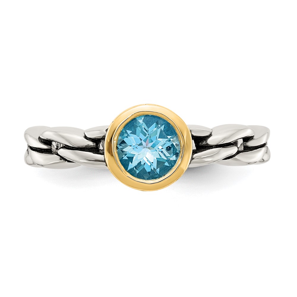 Shey Couture Sterling Silver with 14K Accent Antiqued Round Bezel Sky Blue Topaz Ring