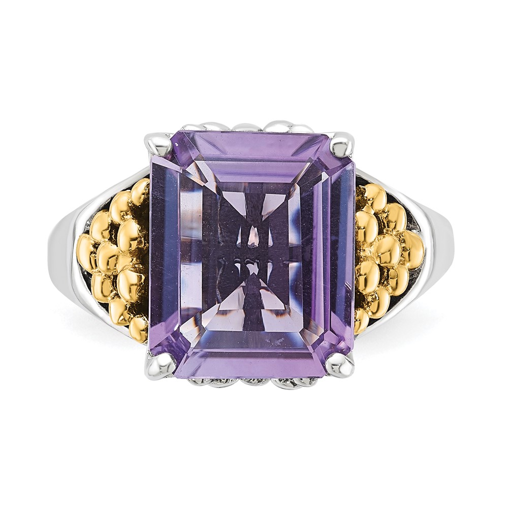 Sterling Silver w/ 14k Accent Antiqued Pink Quartz Ring