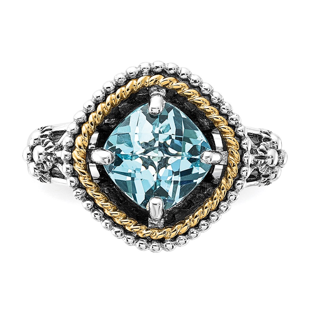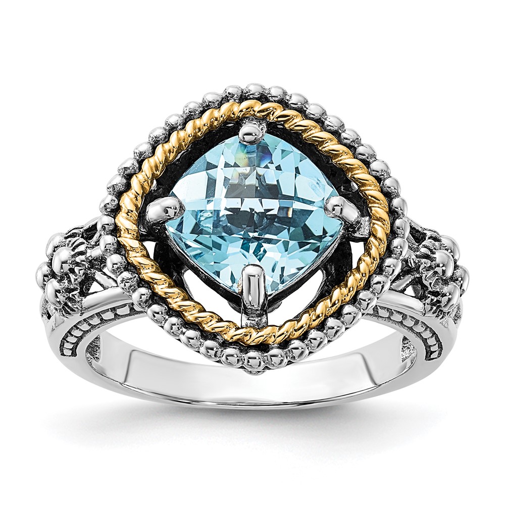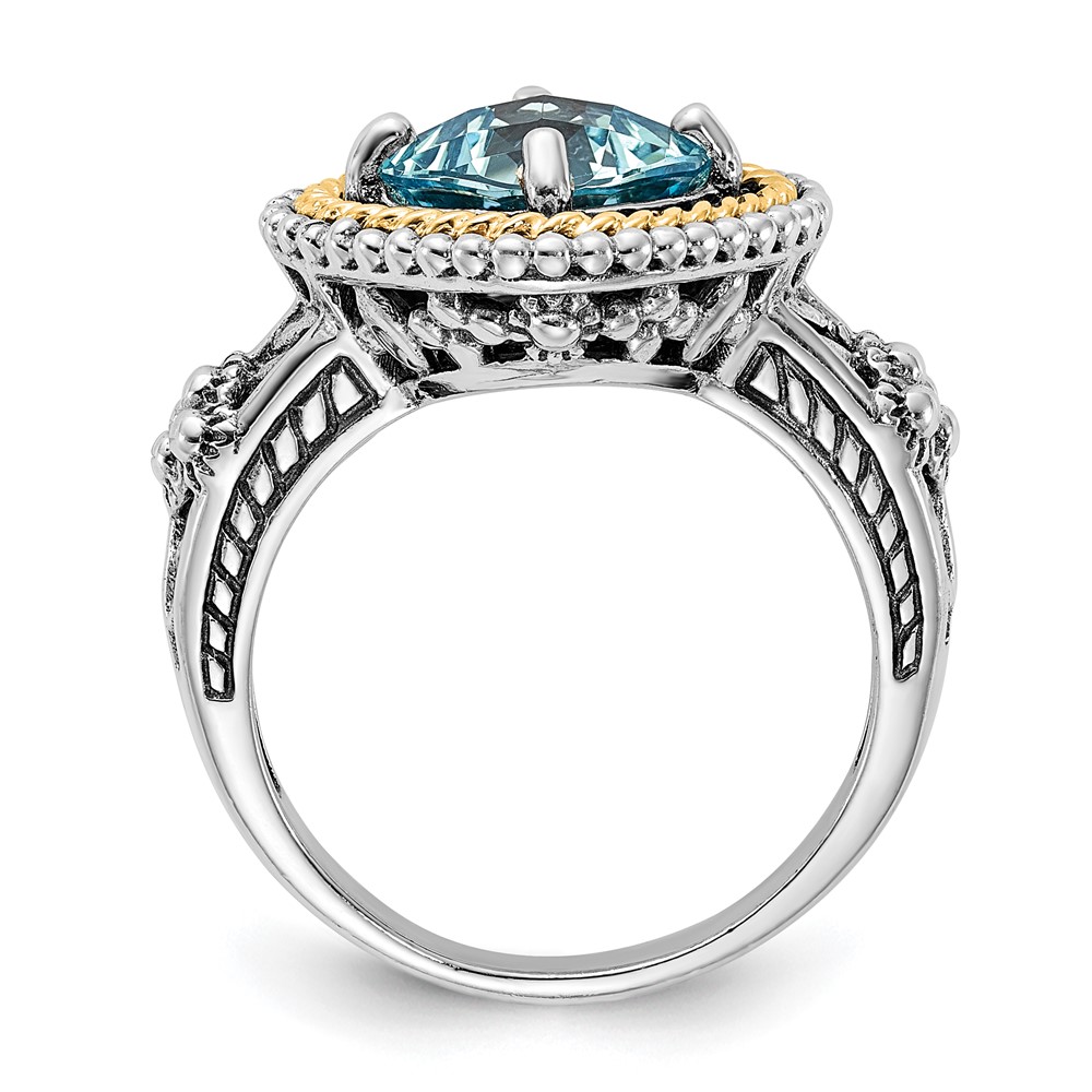 Sterling Silver w/14k Accent Polished & Antiqued Swiss Blue Topaz Ring