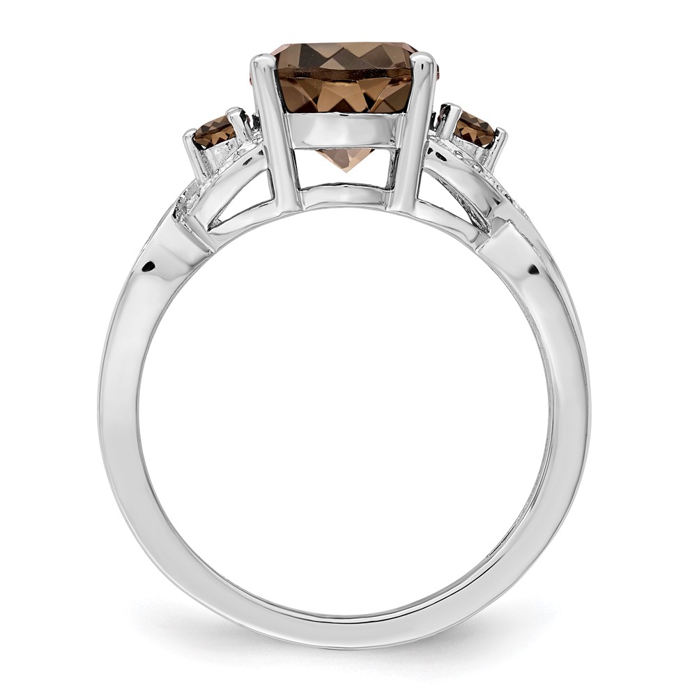 Sterling Silver Rhodium Oval Diam. & Smoky Quartz Ring