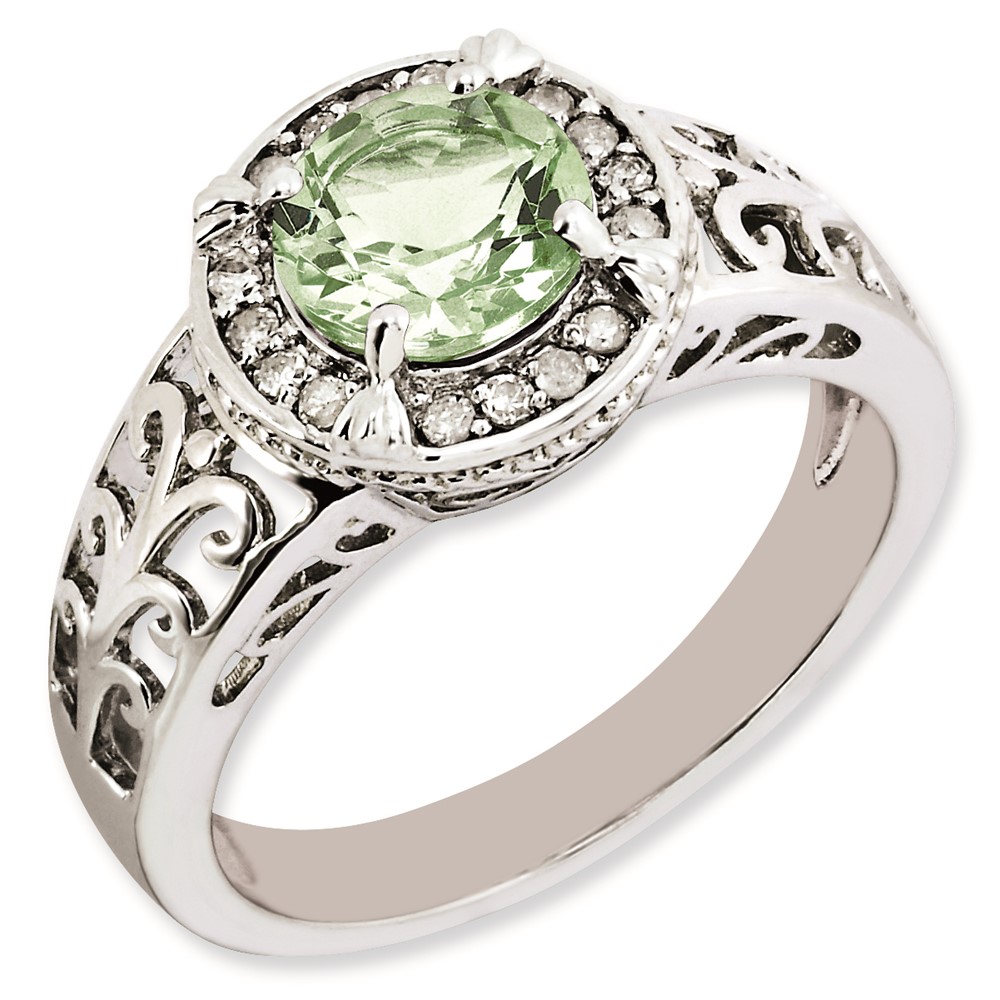 Sterling Silver Rhodium-plated Diamond & Green Quartz Ring