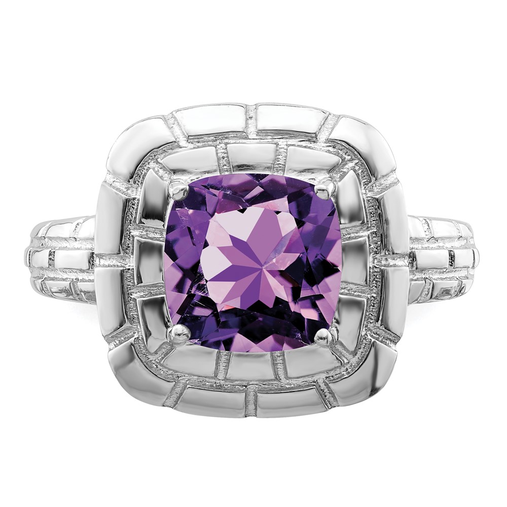 Sterling Silver Rhodium-plated Checker-Cut Amethyst Ring