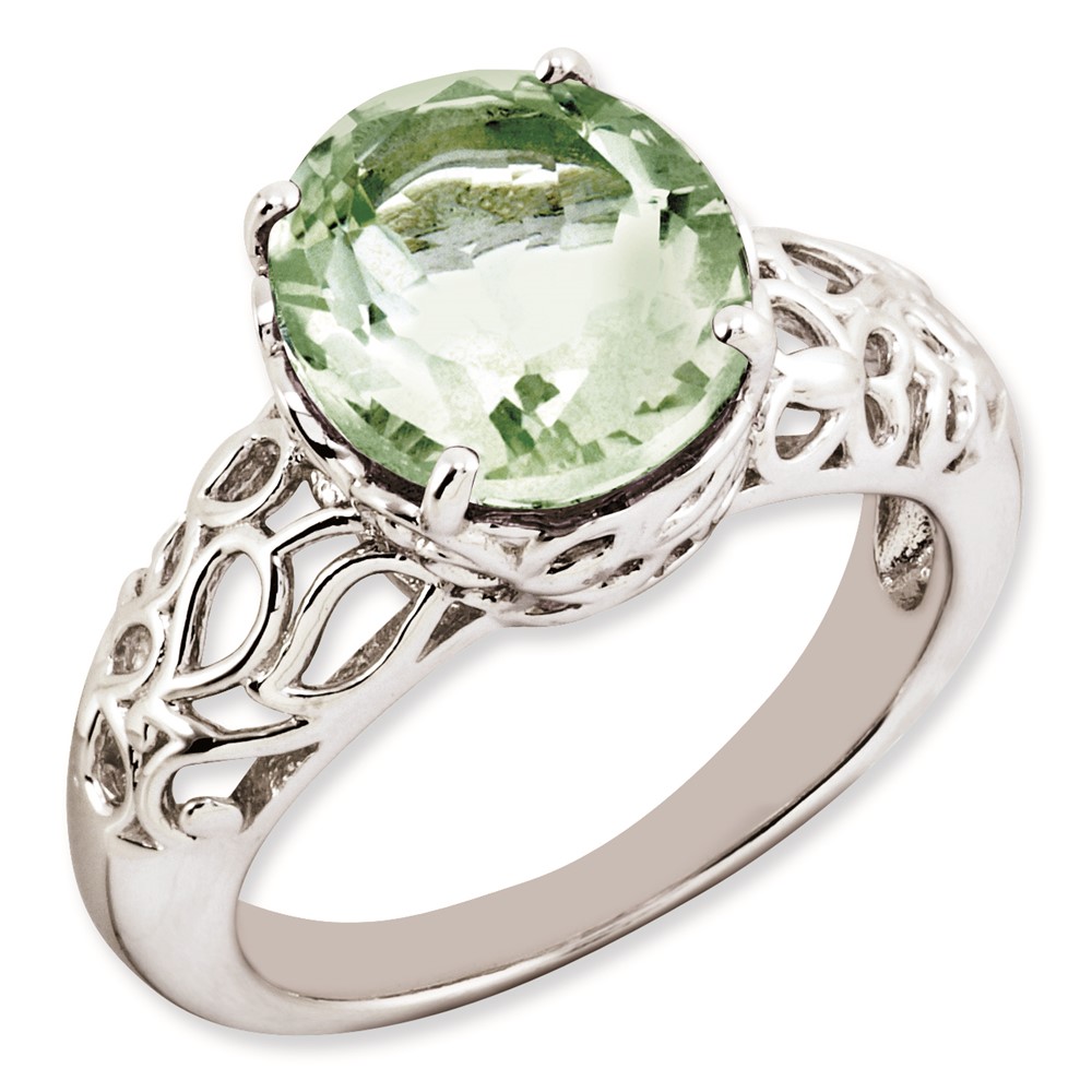 Sterling Silver Rhodium-plated Oval Green Quartz Ring