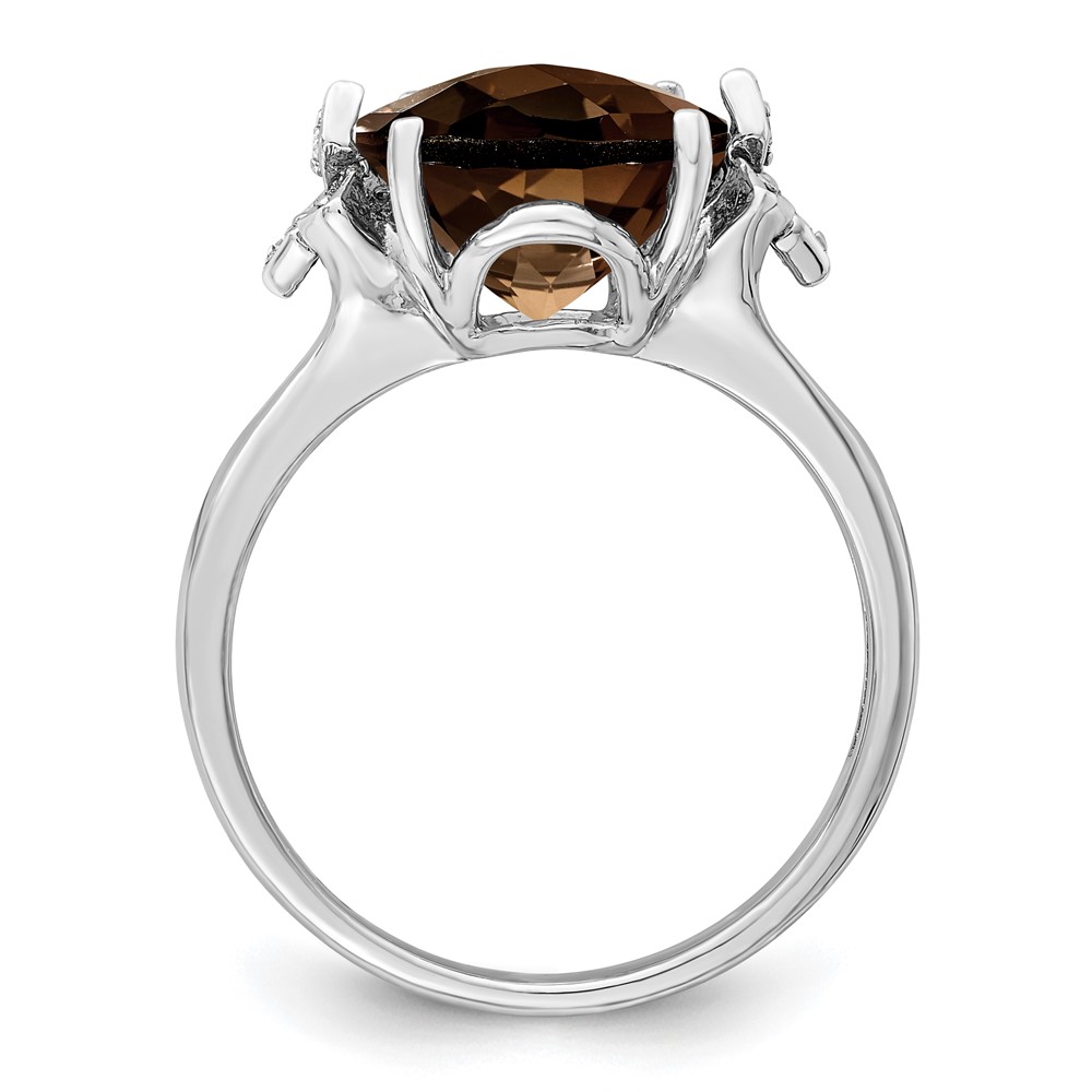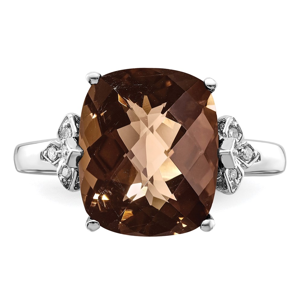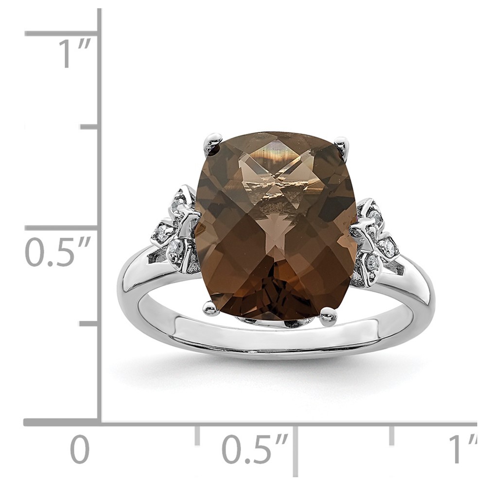 Sterling Silver Rhodium Checker-Cut Smoky Quartz & Diam. Ring