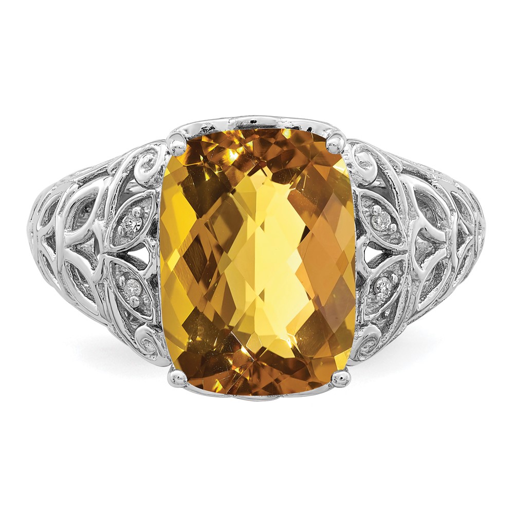 Sterling Silver Rhodium Whiskey Quartz & Diam. Ring