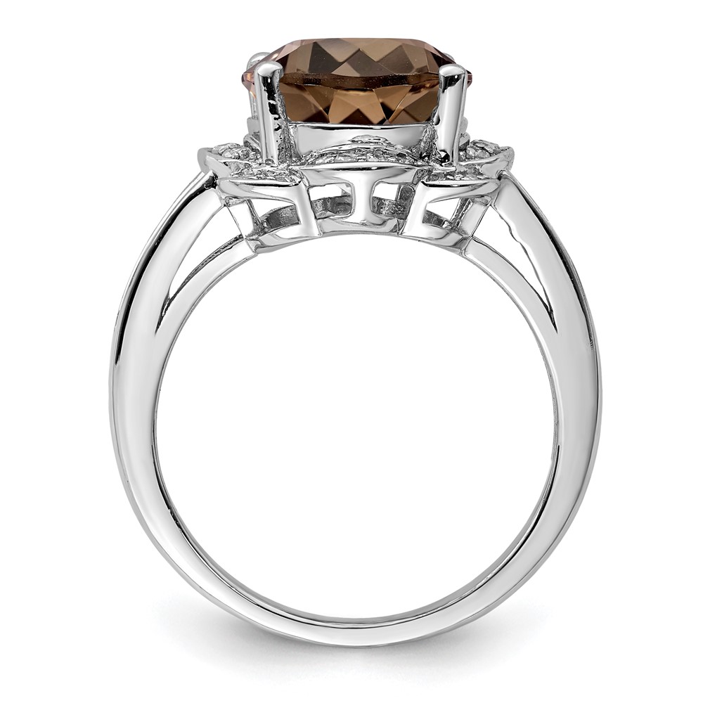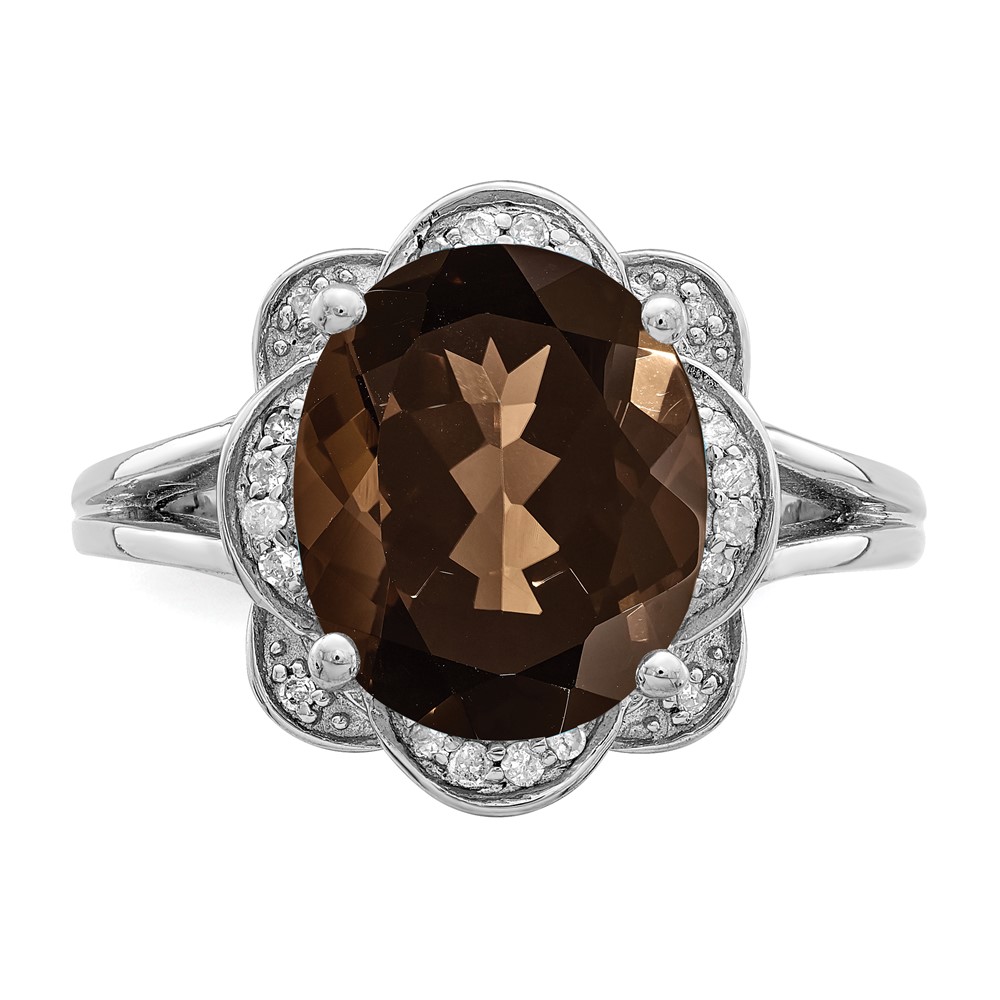 Sterling Silver Rhodium Oval Smoky Quartz & Diam. Ring