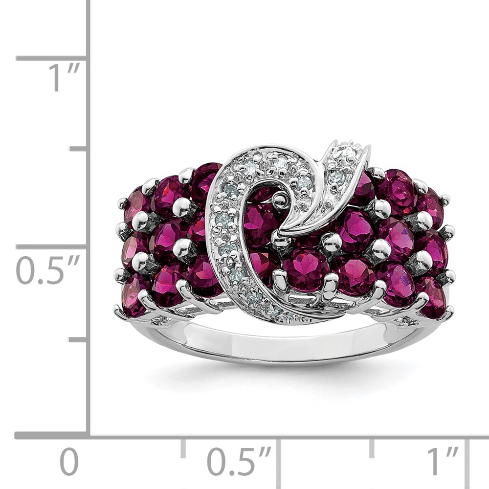 Sterling Silver Rhodium-plated Rhodolite Garnet & Diamond Ring