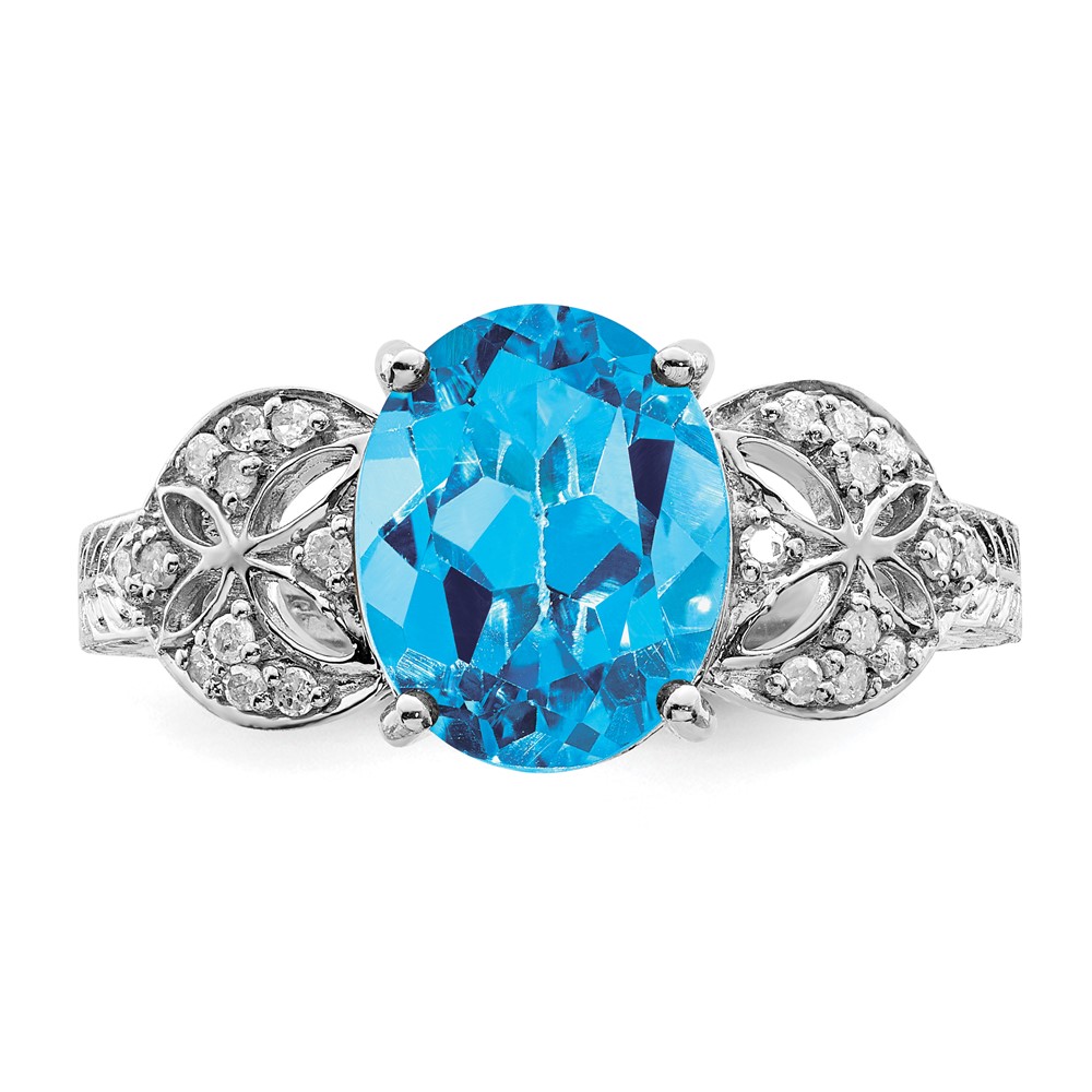 Sterling Silver Rhodium Oval Blue Topaz & Diam. Ring