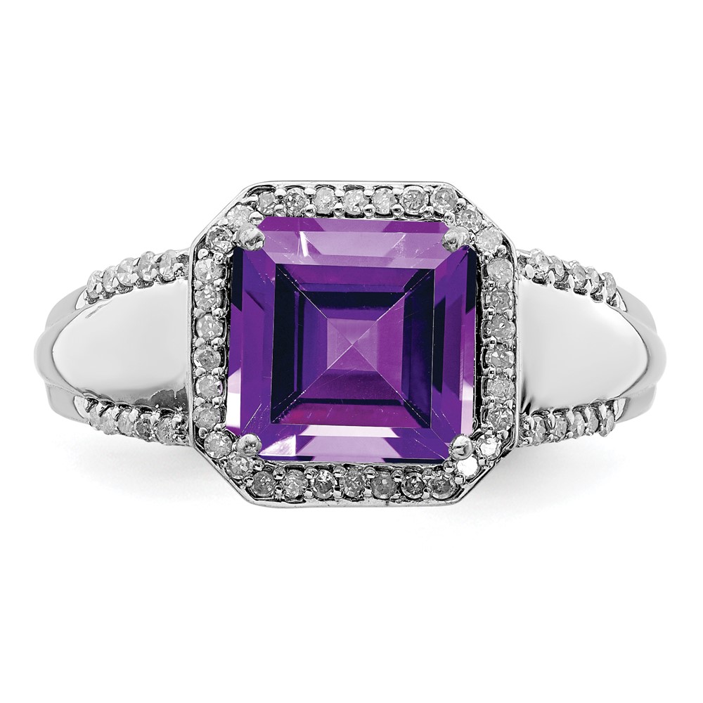 Sterling Silver Rhodium-plated Square Amethyst & Diamond Ring