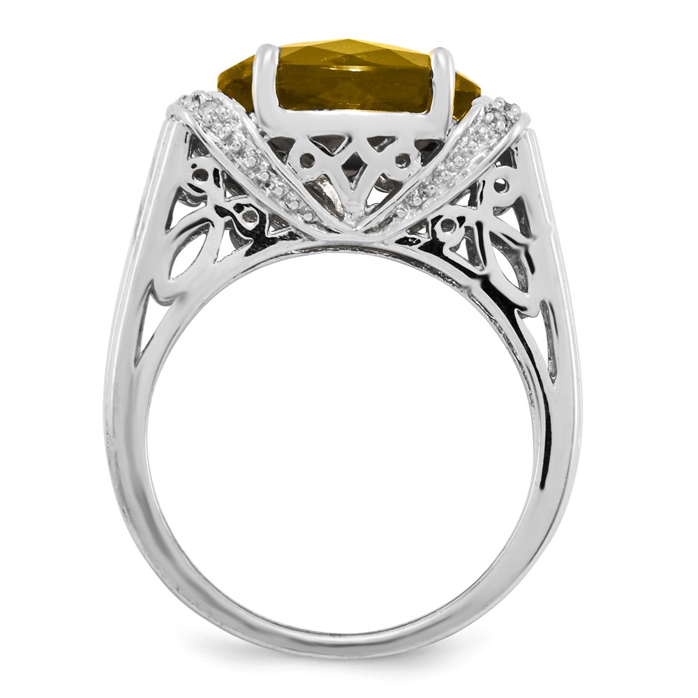 Sterling Silver Rhodium-plated Checker-Cut Whiskey Quartz Ring