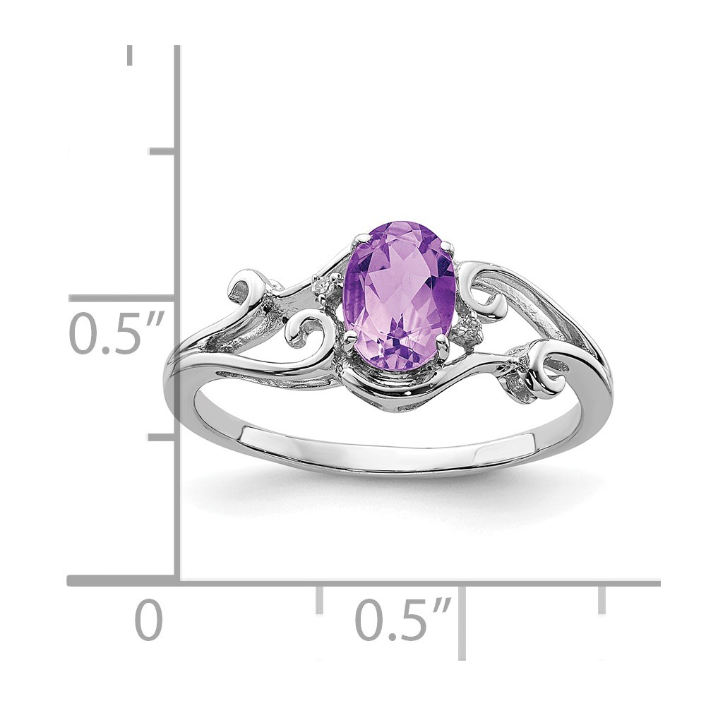 Sterling Silver Rhodium Plated Diamond and Gemstone Oval Ring