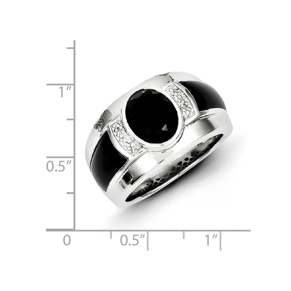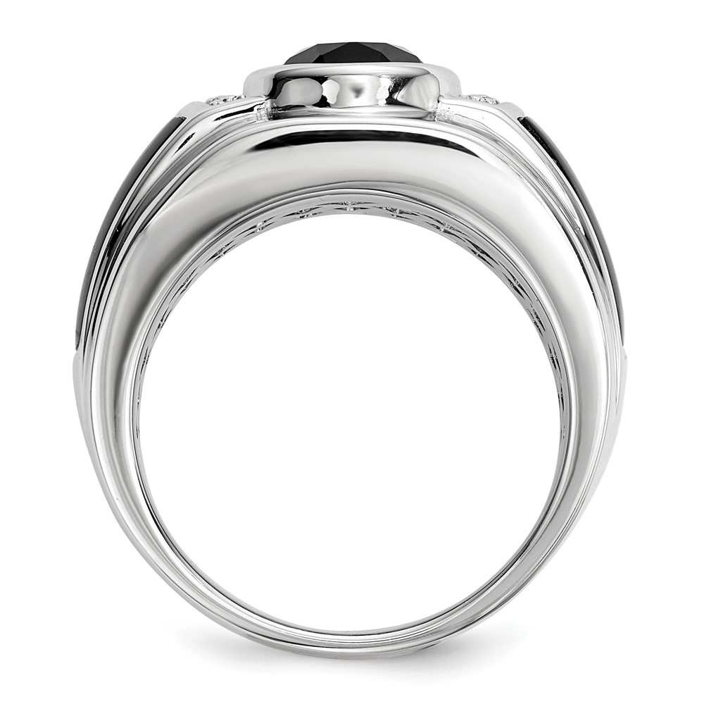 White Night Sterling Silver Rhodium-plated Diamond and Onyx Men's Ring