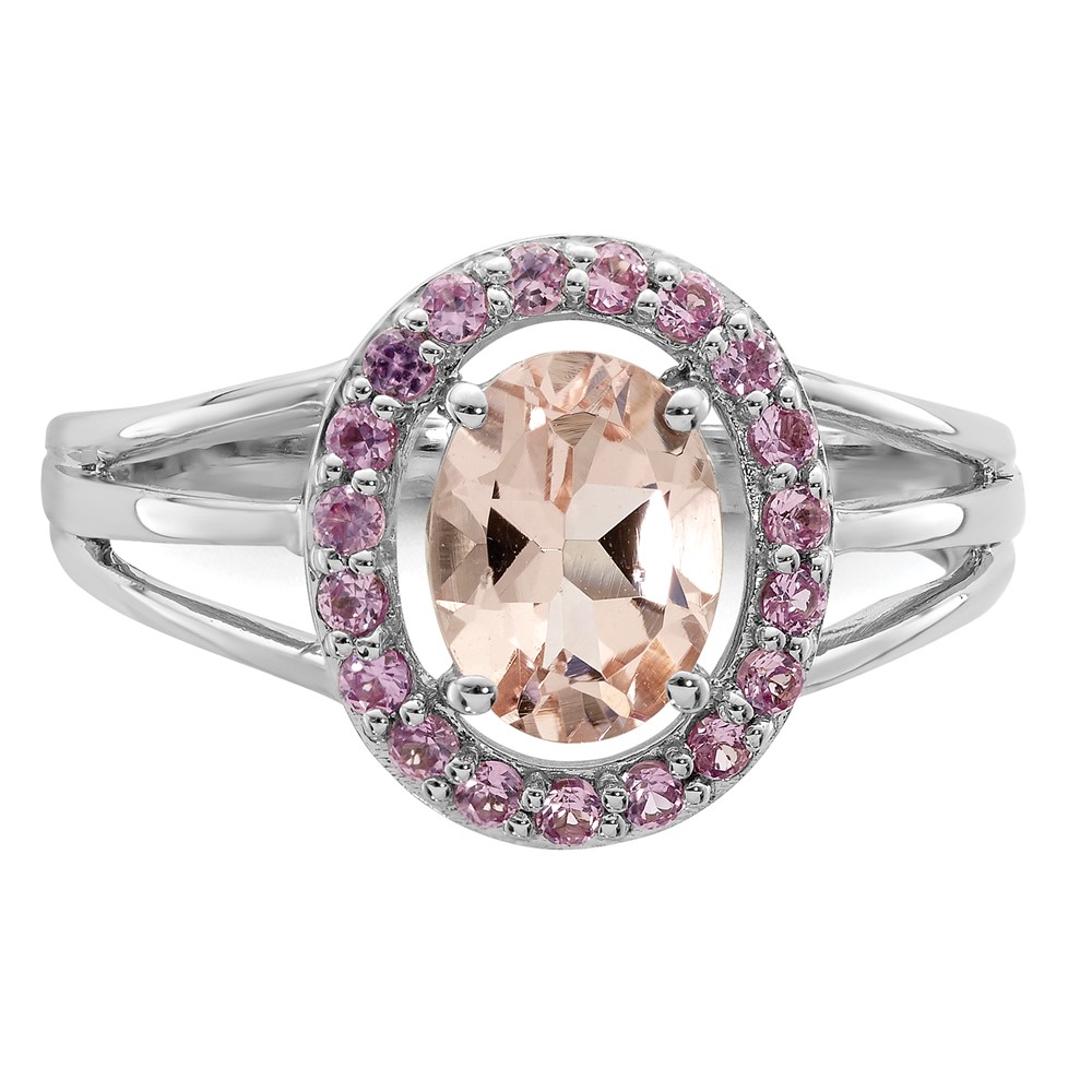 Sterling Silver Rhodium Morganite & Pink Sapphire Oval Ring