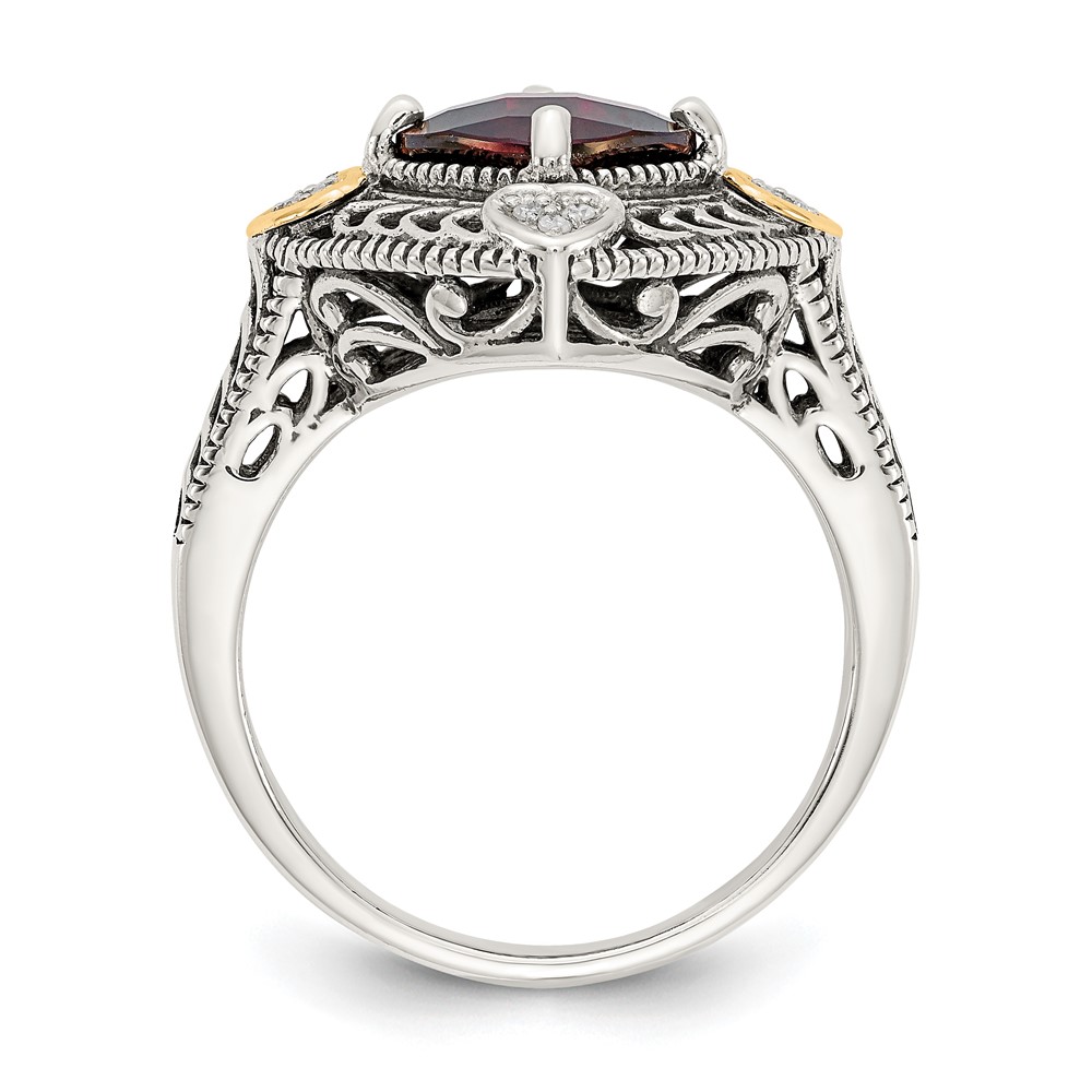Shey Couture Sterling Silver with 14K Accent Antiqued Diamond and Checkerboard Cushion Garnet Ring