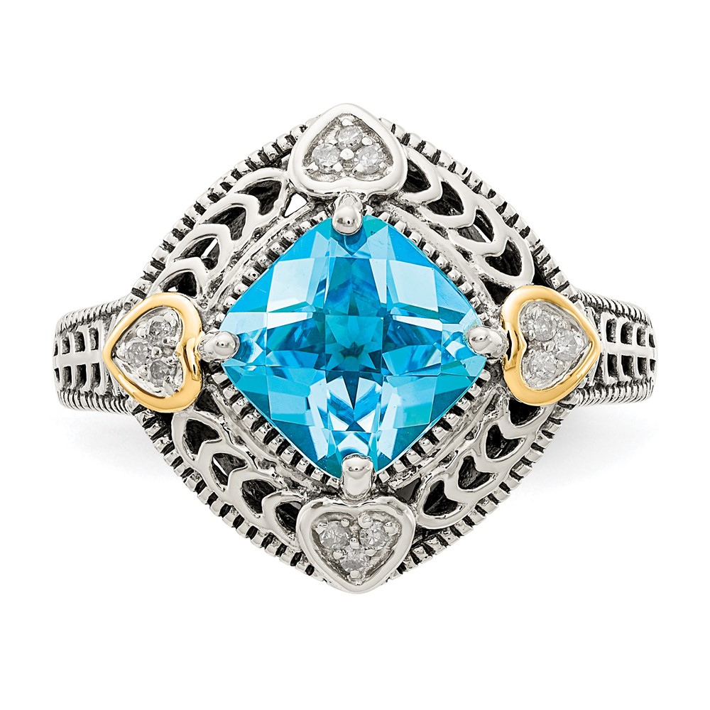 Shey Couture Sterling Silver with 14K Accent Antiqued Diamond and Cushion Blue Topaz Ring