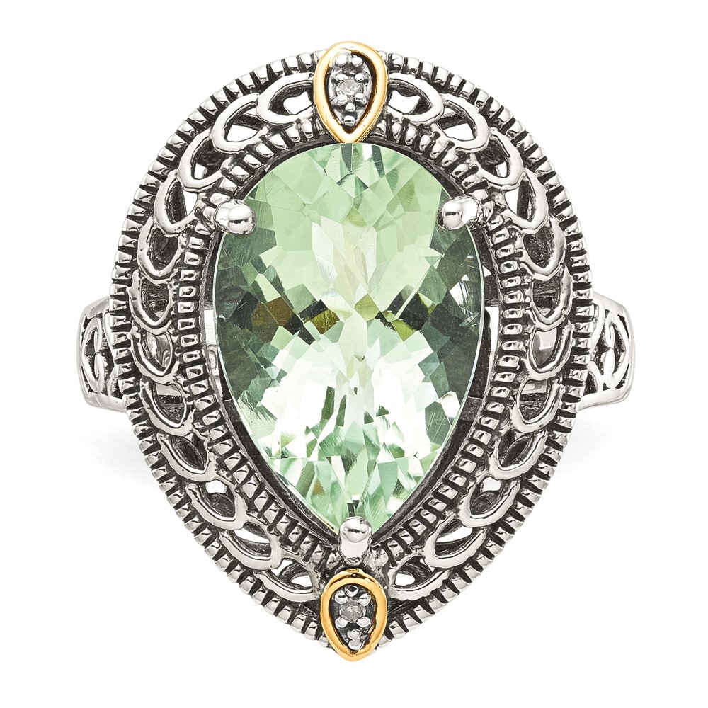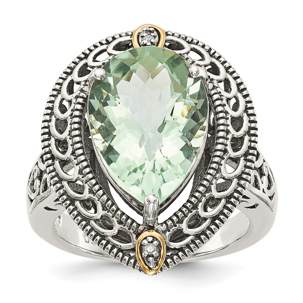 Shey Couture Sterling Silver with 14K Accent Antiqued Diamond and Pear Shaped Green Quartz Ring