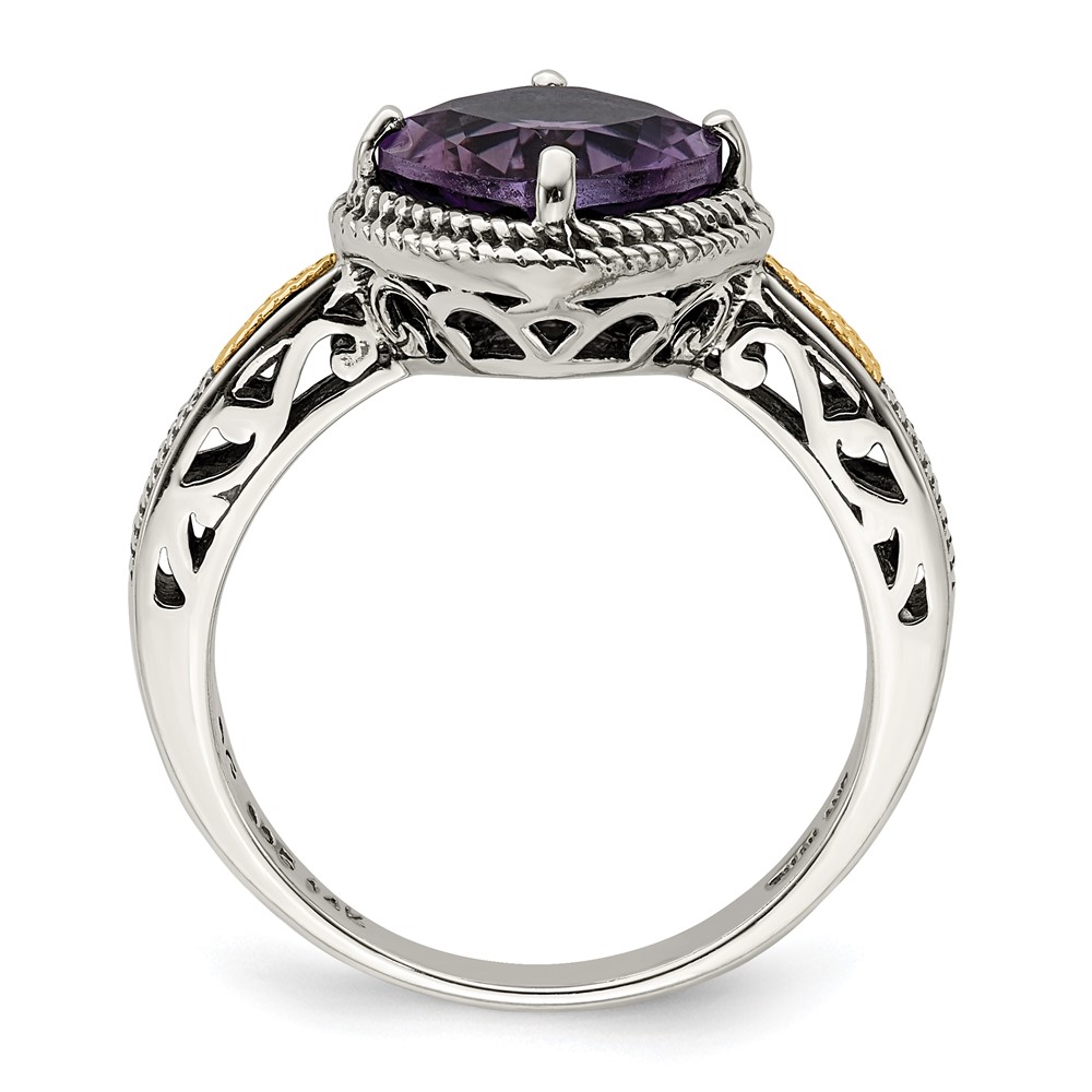 Shey Couture Sterling Silver with 14K Accent Antiqued Cushion Amethyst Ring