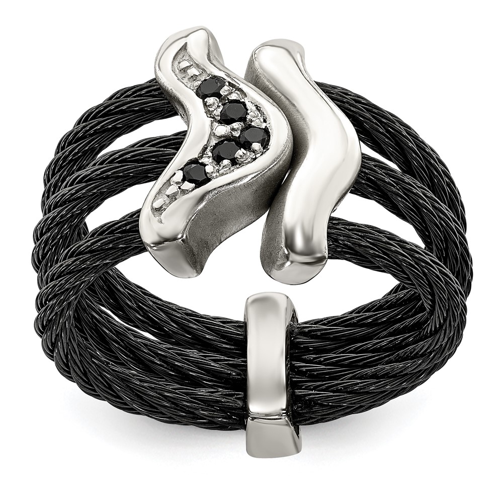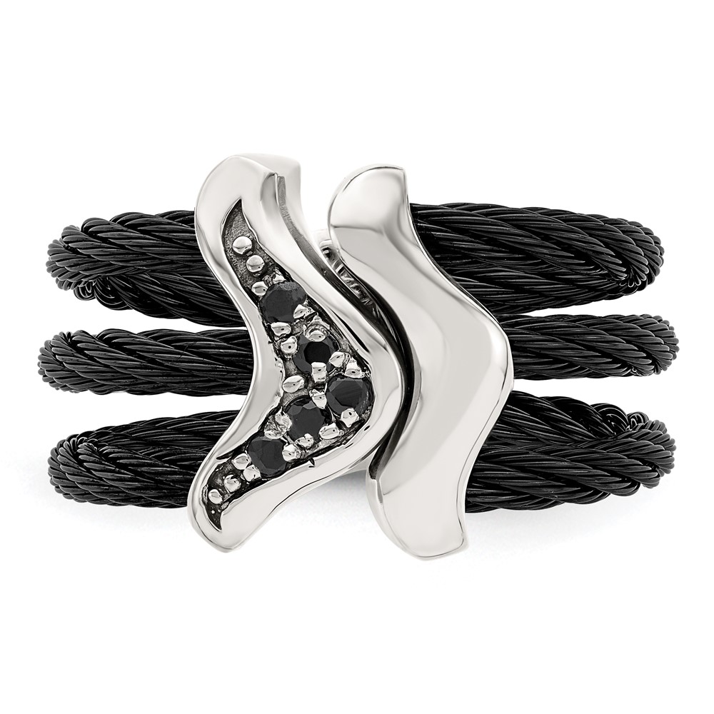 Edward Mirell Black Ti w/Sterling Silver Black Spinel Cable Flexible Ring