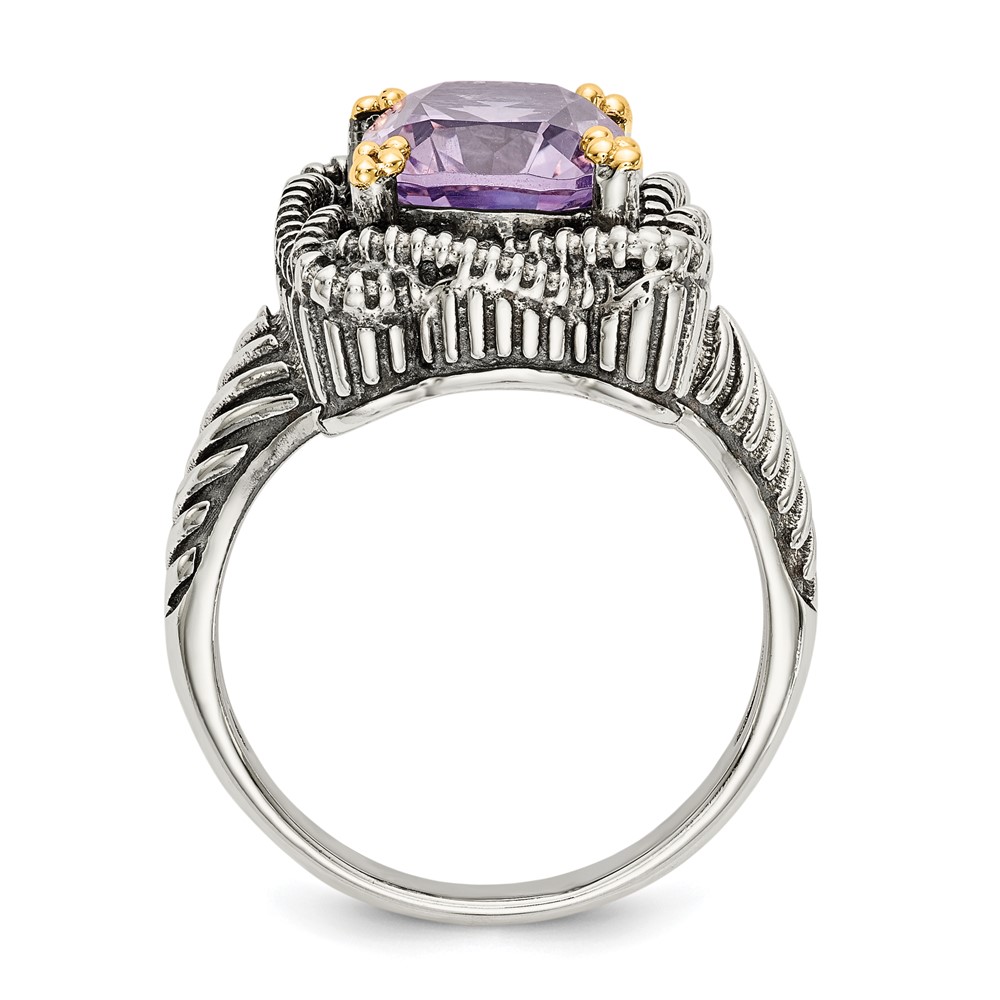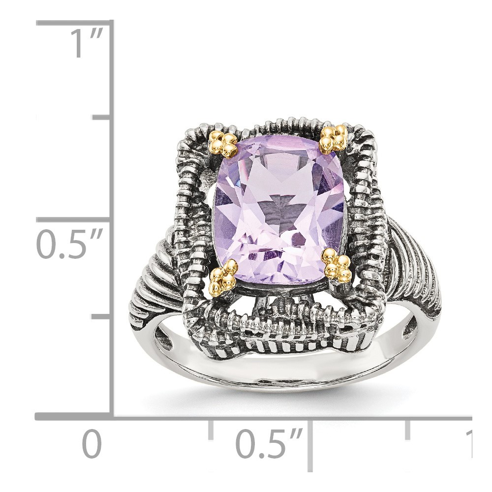 Shey Couture Sterling Silver with 14K Accent Antiqued Cushion Pink Quartz Ring
