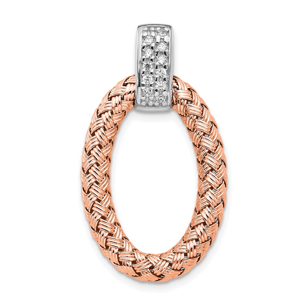 Leslie's Sterling Silver RH-plate Rose Gold-plate CZ Braided Oval Pendant