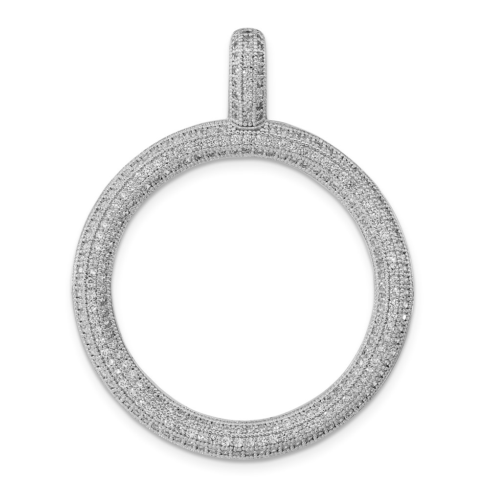 Sterling Silver Rhodium-plated CZ Wavy Circle Pendant