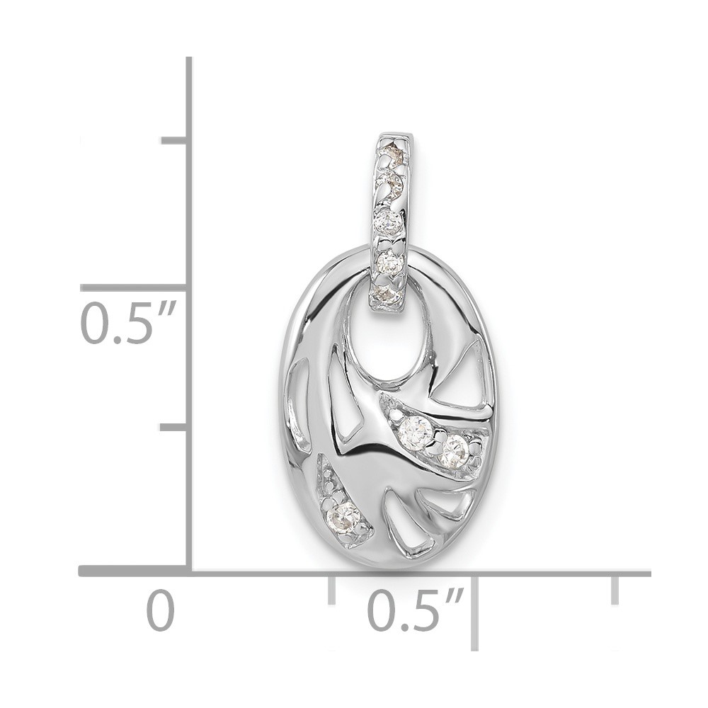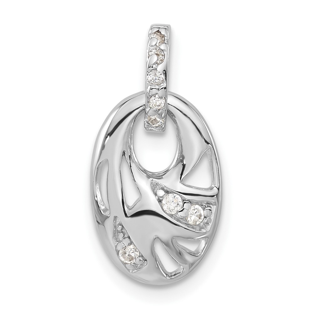 Sterling Silver Rhodium-plated CZ Geometric Oval Pendant