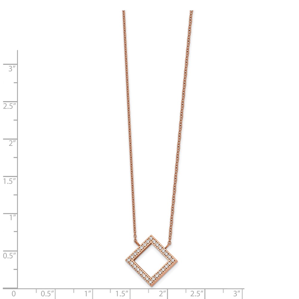 Chisel Stainless Steel Polished Rose IP-plated CZ Pendant on a 17 inch Cable Chain with a 2.5 inch Extension Necklace