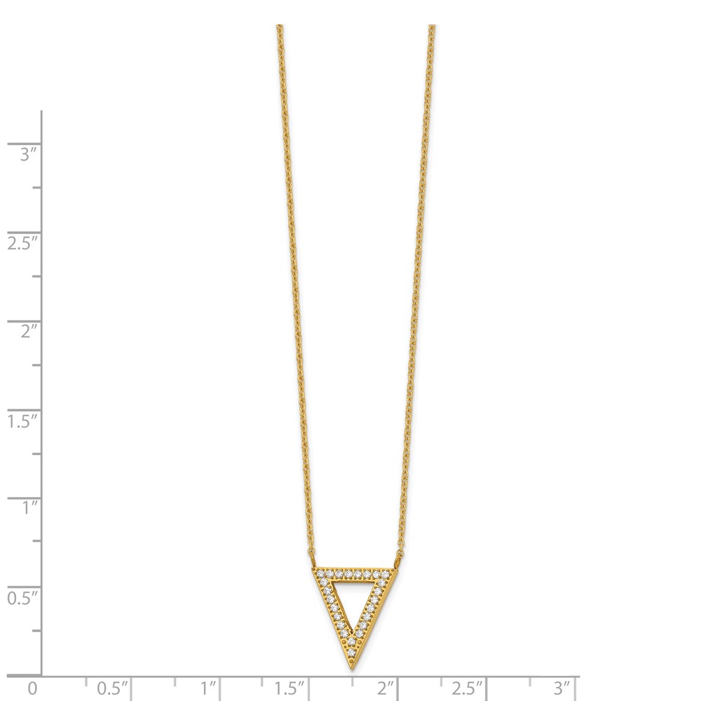 Chisel Stainless Steel Polished Yellow IP-plated CZ Triangle on a 17 inch Cable Chain with 2.5 inch Extension Necklace