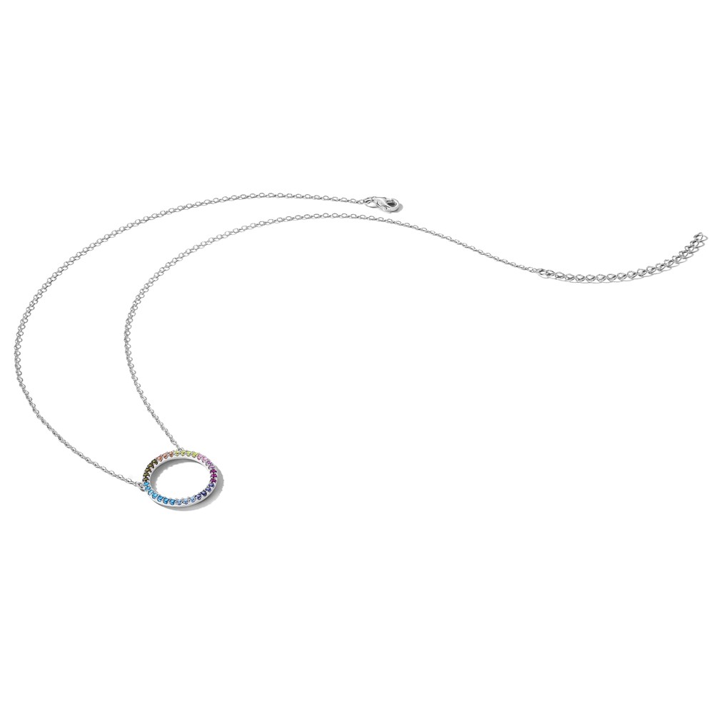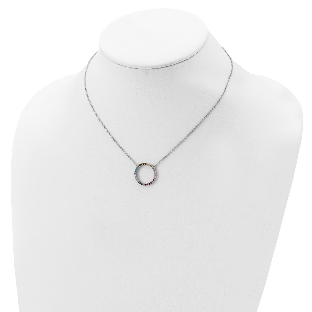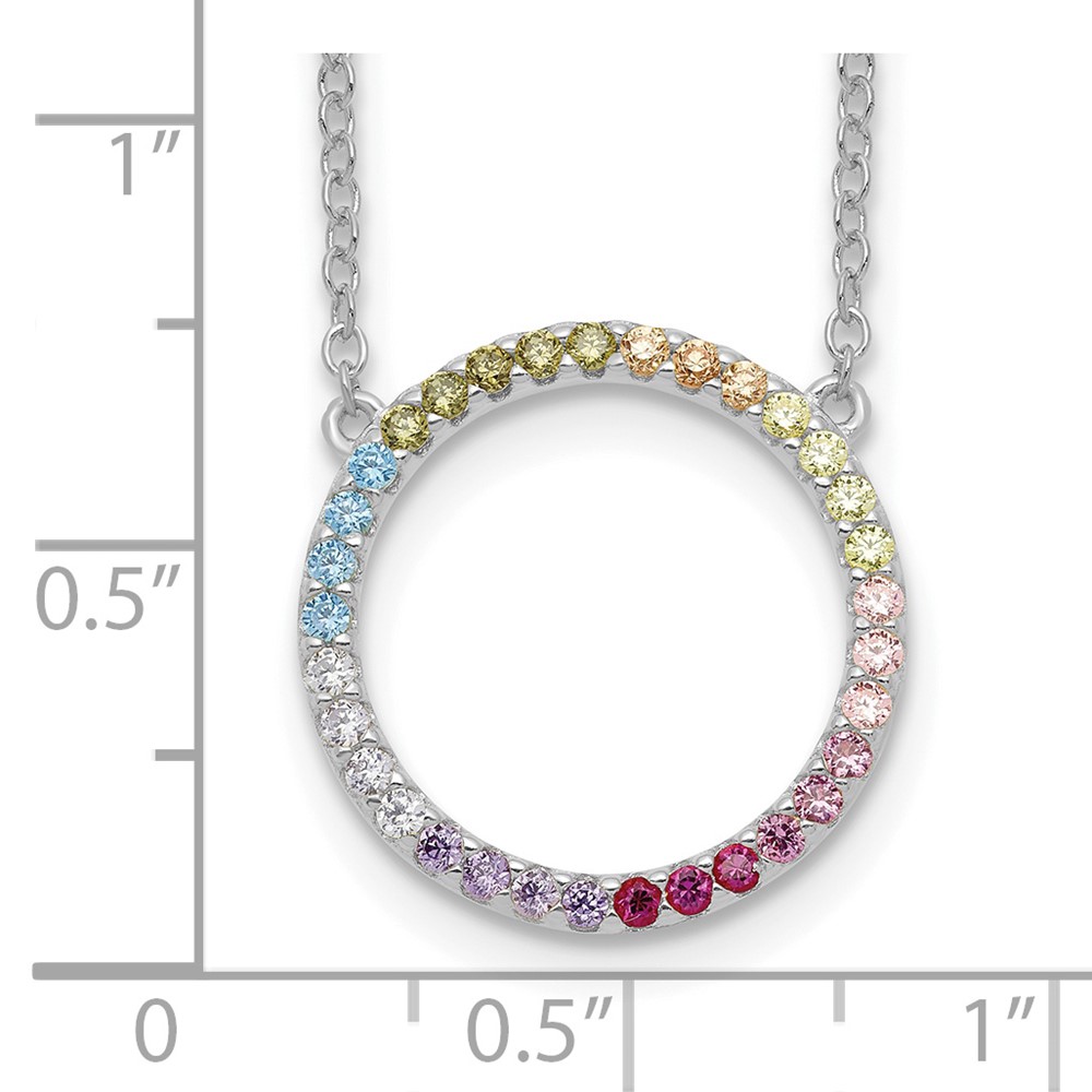 Prizma Sterling Silver Rhodium-plated 16 inch Colorful CZ Open Circle Necklace with 2 inch Extender