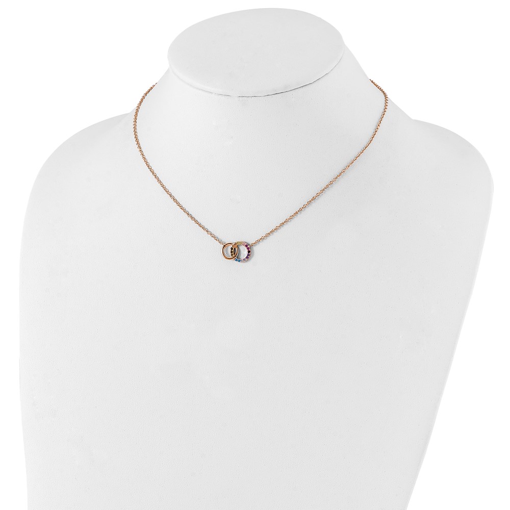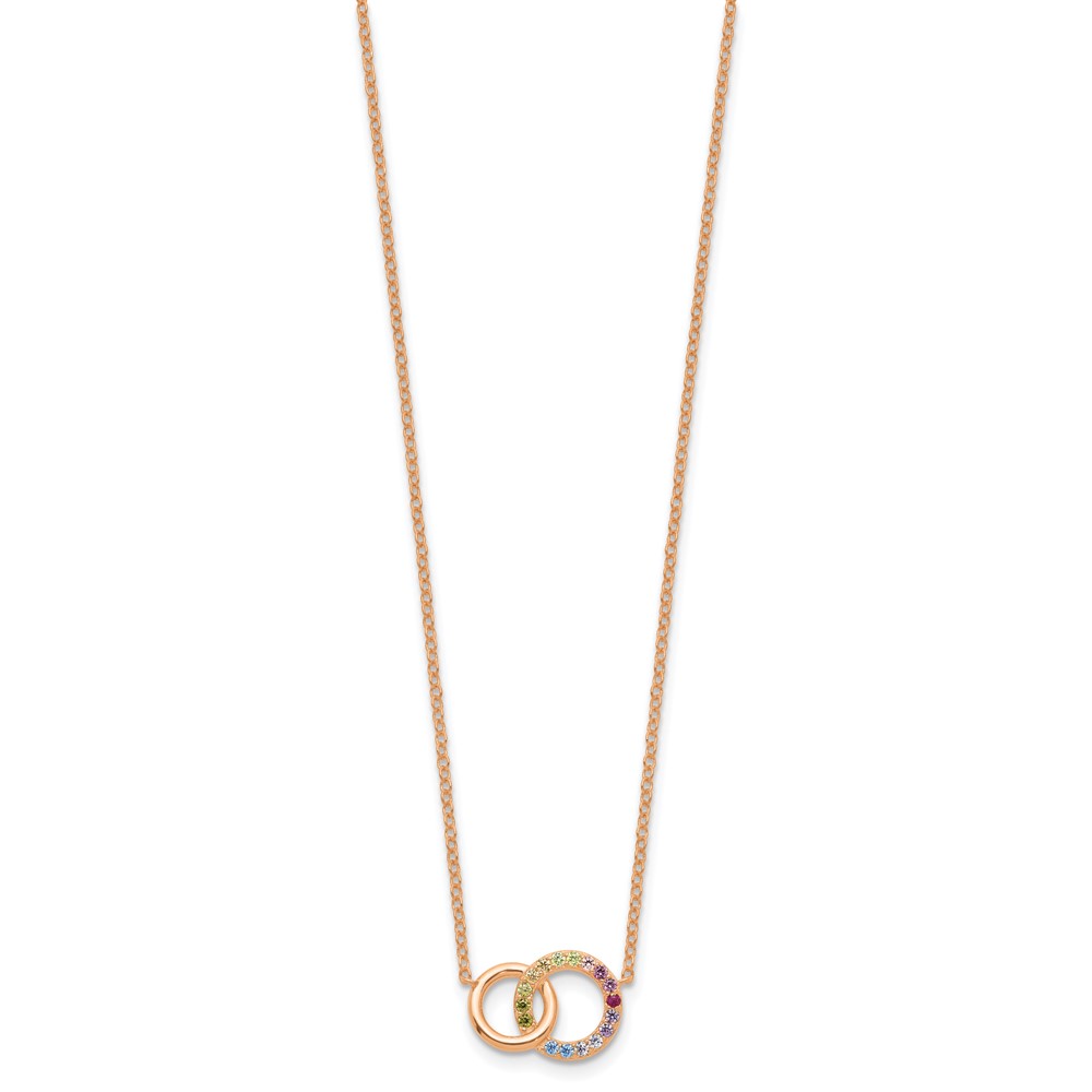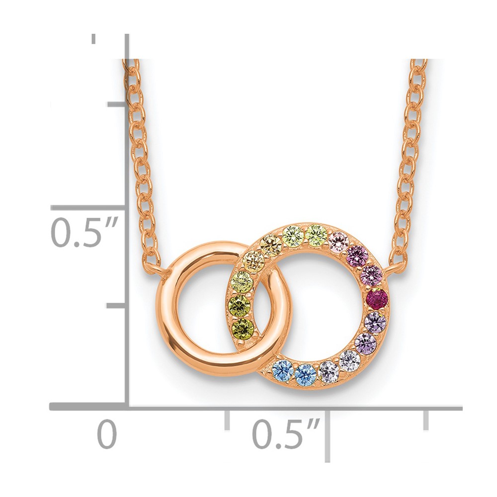 Prizma Sterling Silver Rose-tone 14K Flash Rose Gold-plated 16 inch Colorful CZ Intertwined Circle Necklace with 2 inch Extender