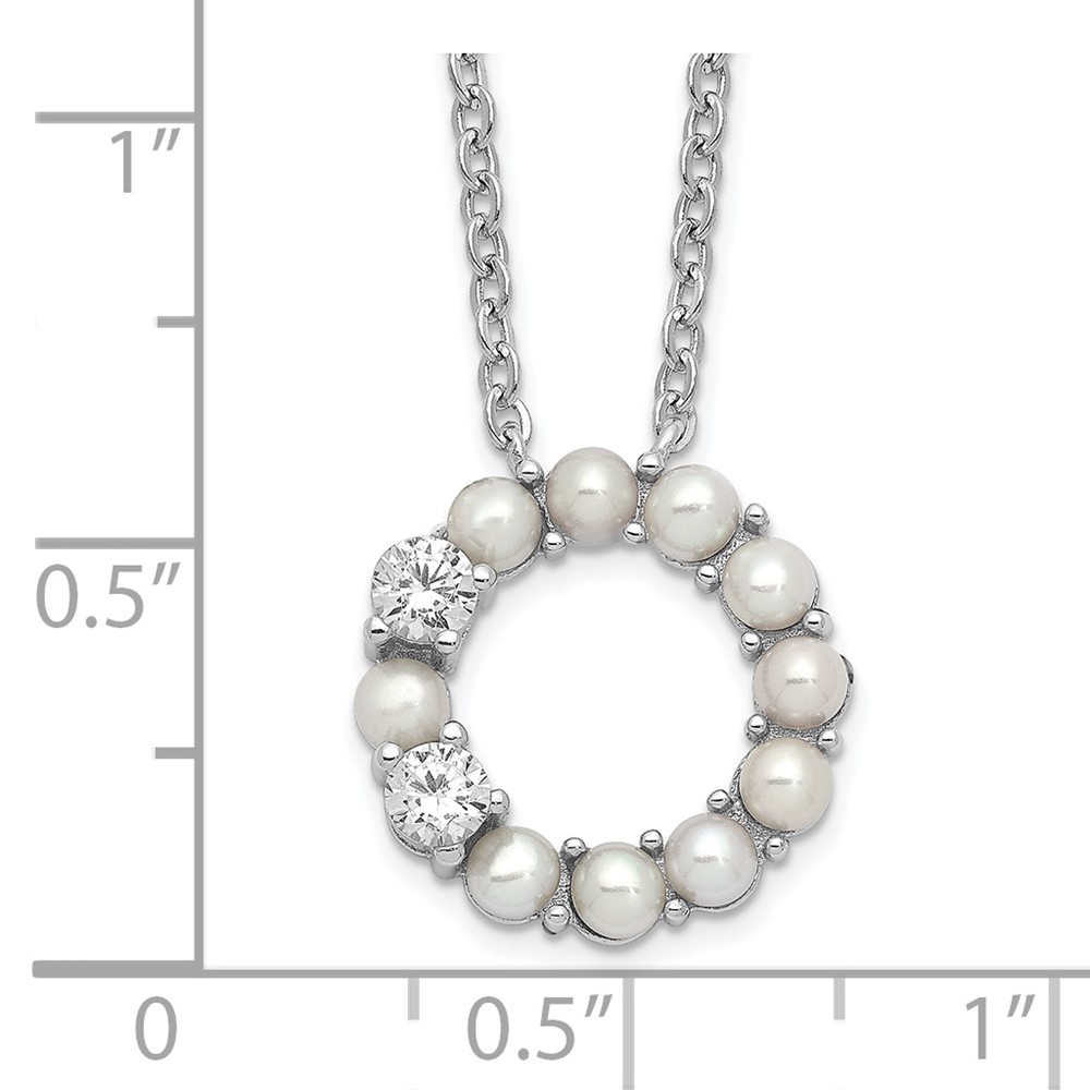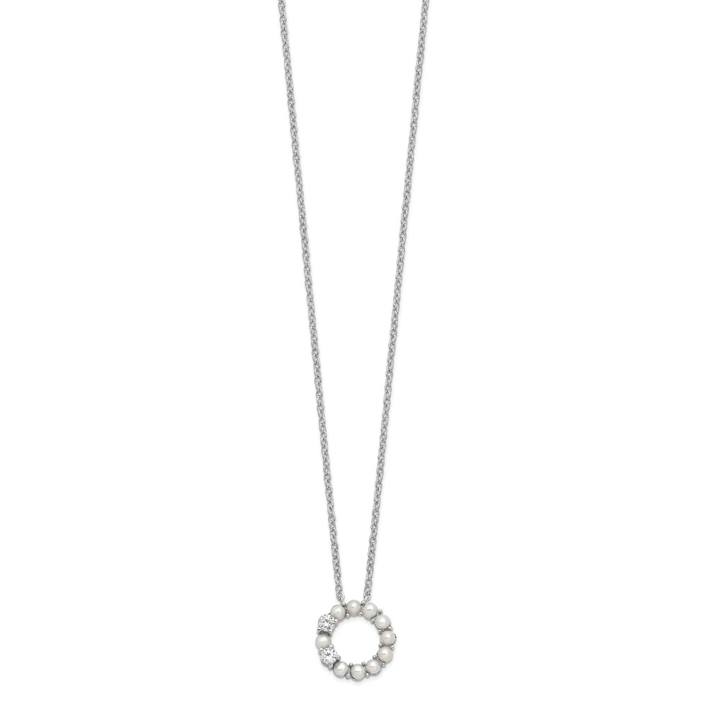 Sterling Silver Rhodium-plated 3-3.5mm FWC Pearl CZ 1.75in ext Necklace