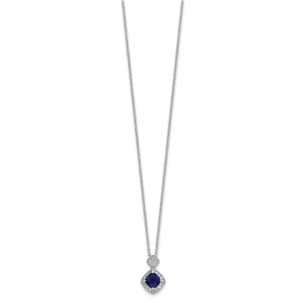 Cheryl M Sterling Silver Rhodium-plated Cushion-cut Blue Glass and Brilliant-cut White CZ 18 Inch Necklace