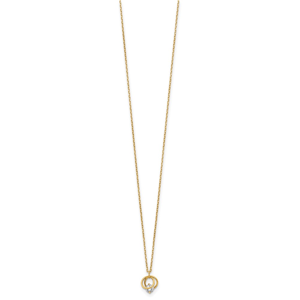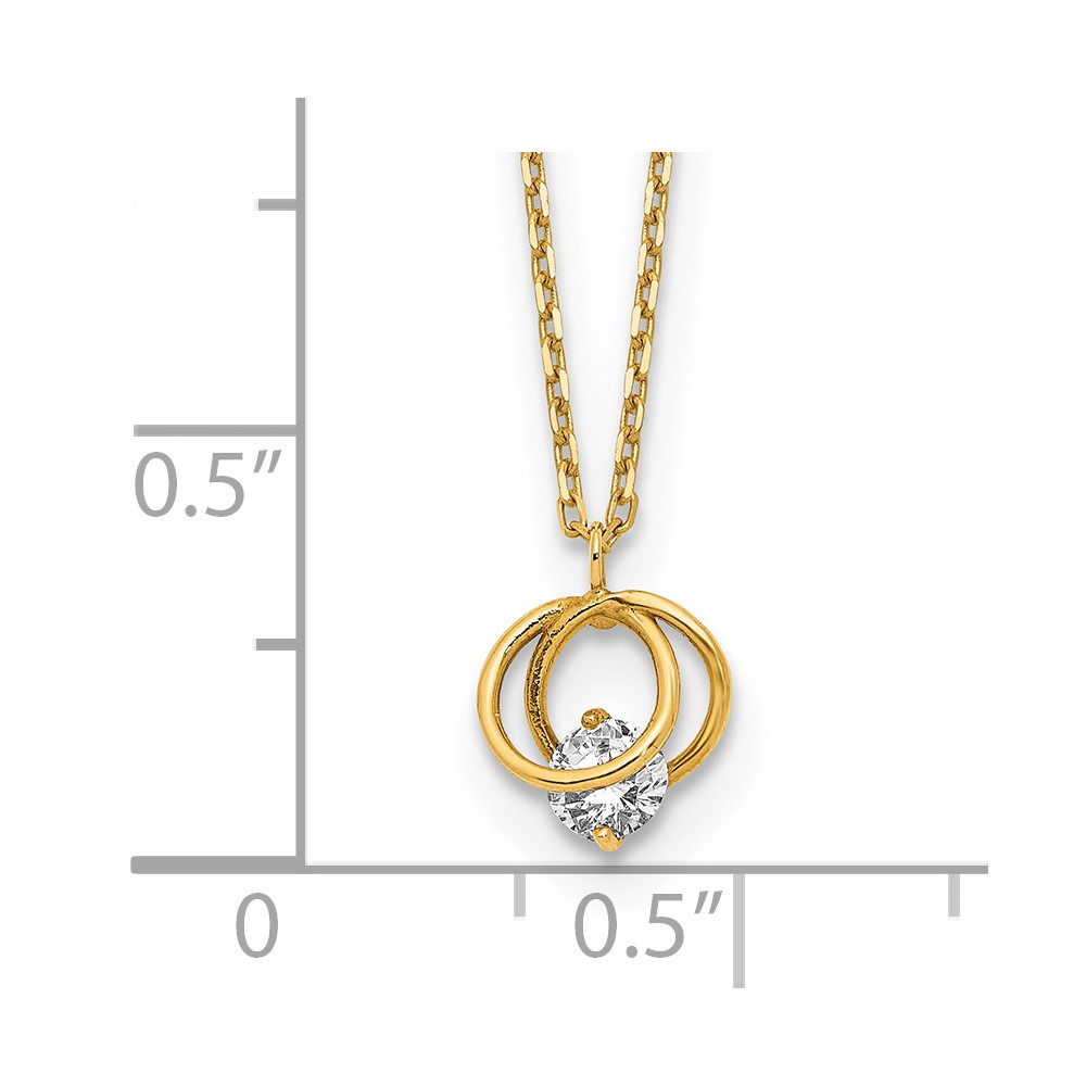 14k Yellow Gold Polished CZ Double Circle 15in w/1in ext Necklace