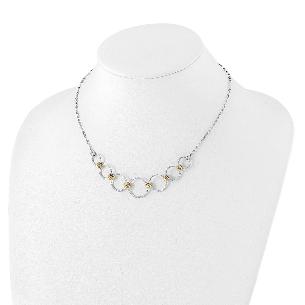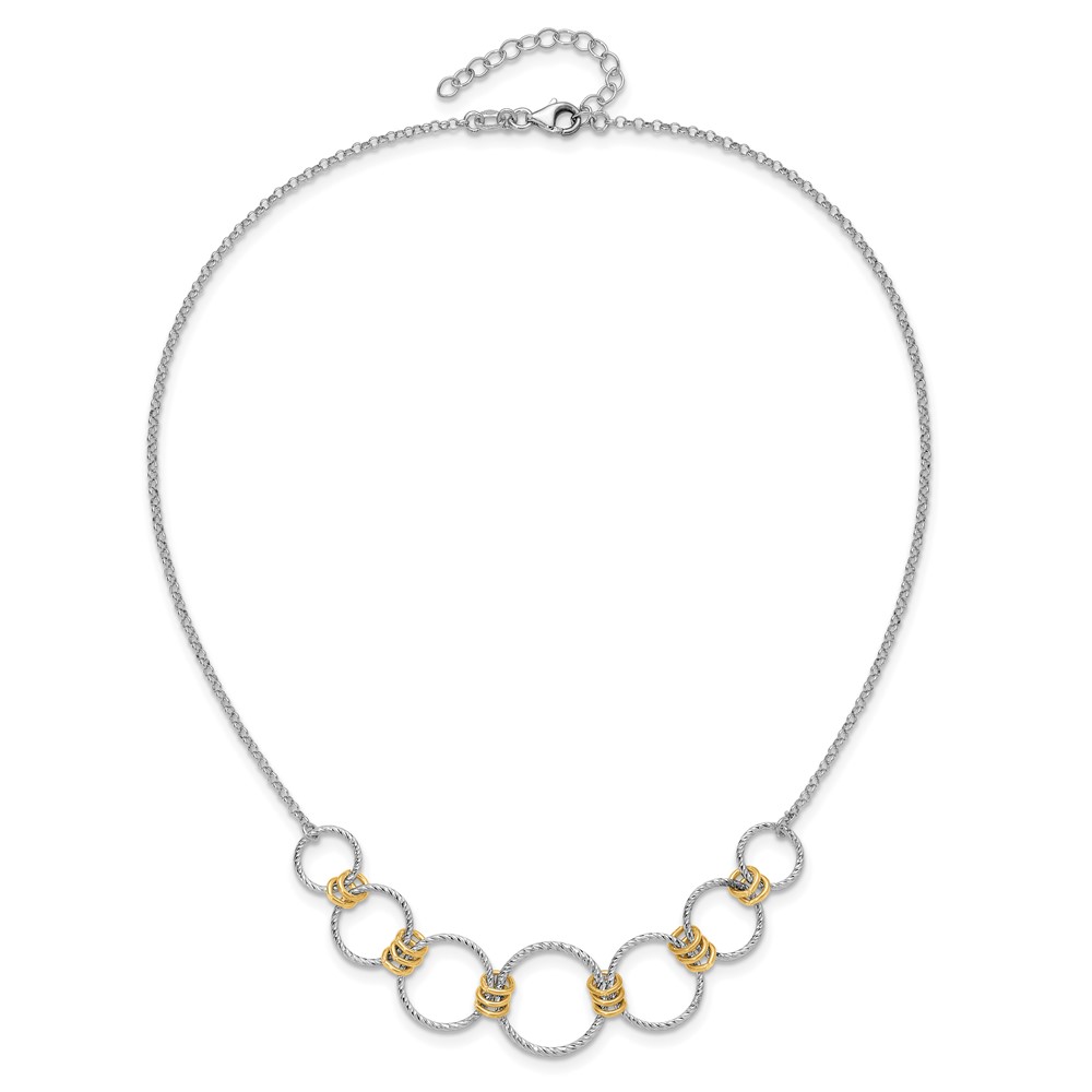 Leslie's Sterling Silver RH/Gold-plt Dia.-Cut Circles with 2in ext Necklace