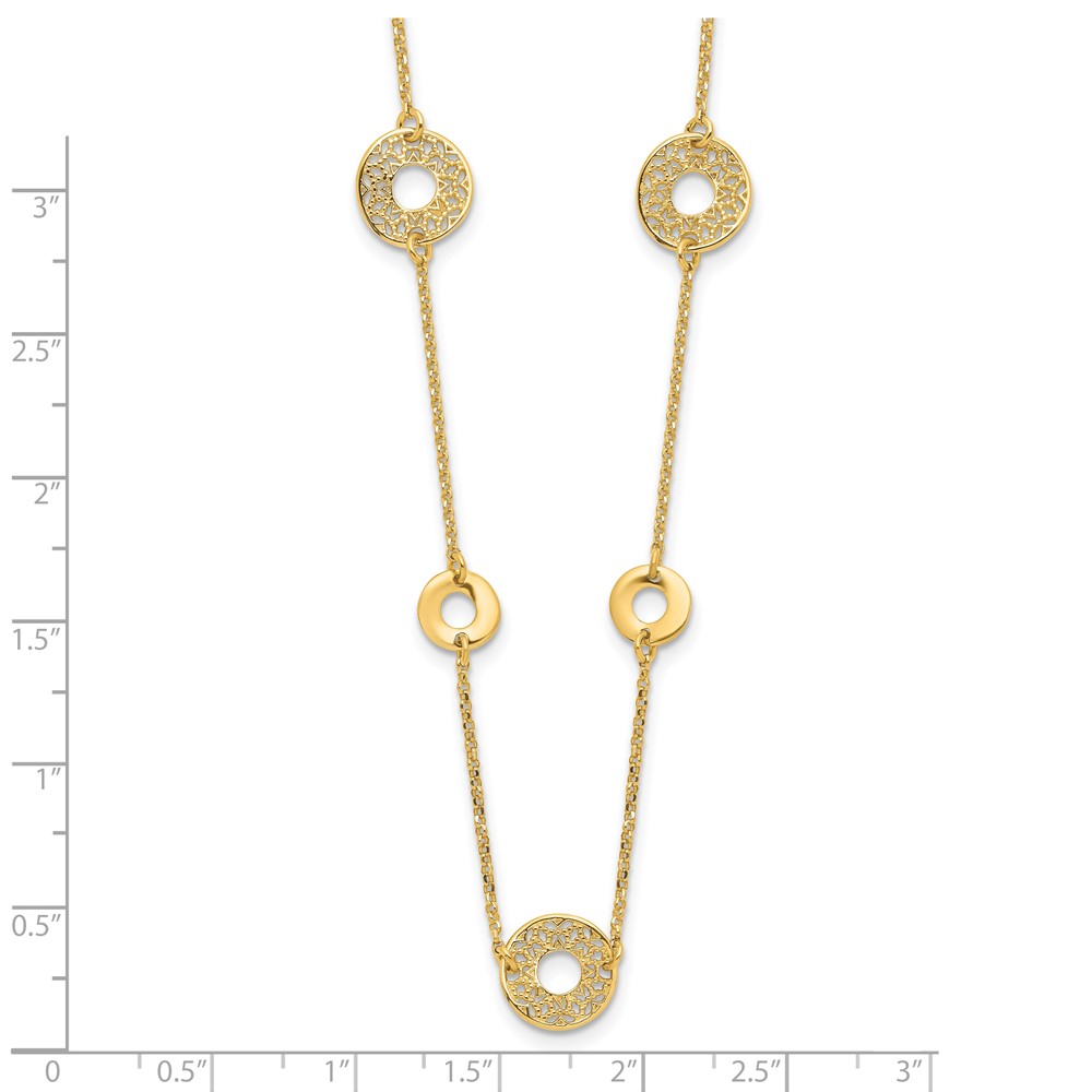 Leslie's 14K Polished and Filigree Circle Stations with 1in. ext. Necklace