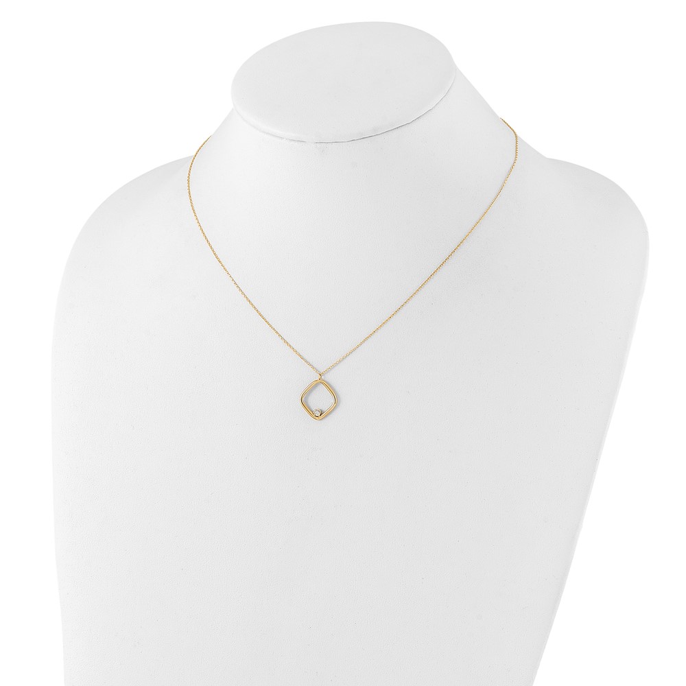 Leslie's 14K with Rhodium Polished CZ Square Necklace