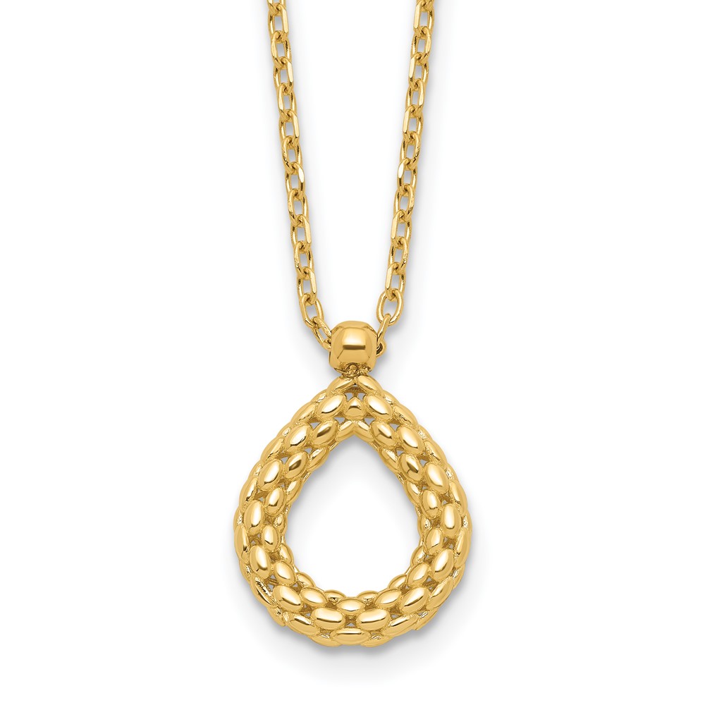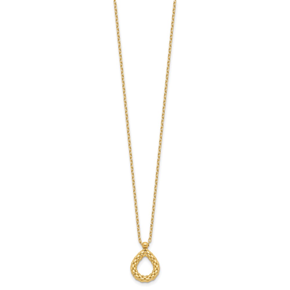 Leslie's 14K Polished and Textured Teardrop with .5in ext. Necklace