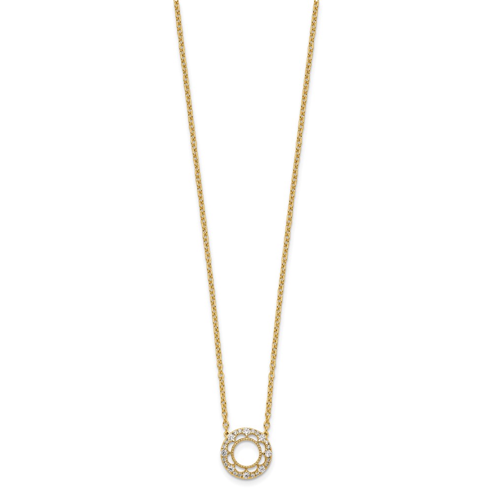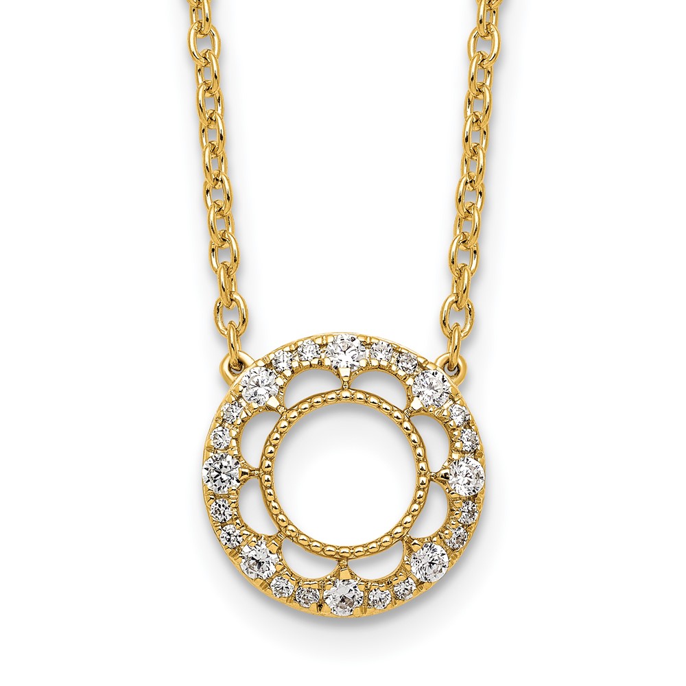 14k Polished 1/4 carat Diamond Fancy Floral Circle 18 inch Necklace