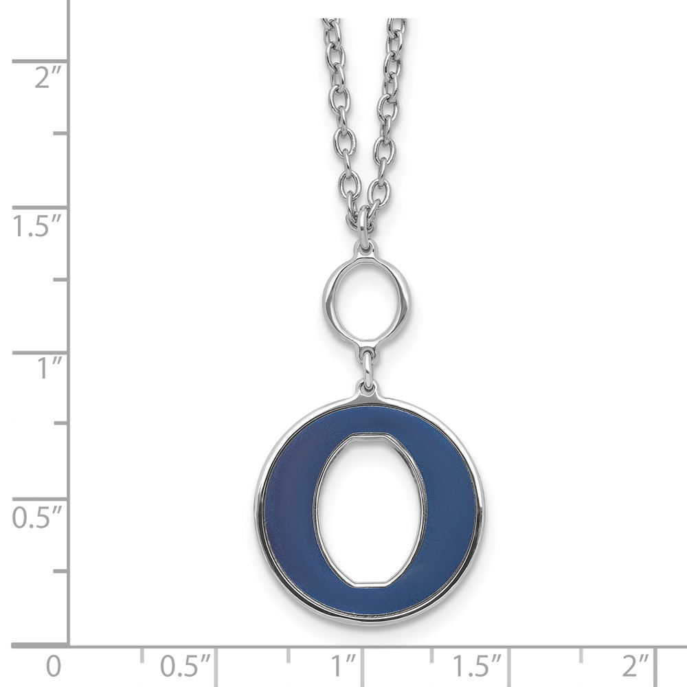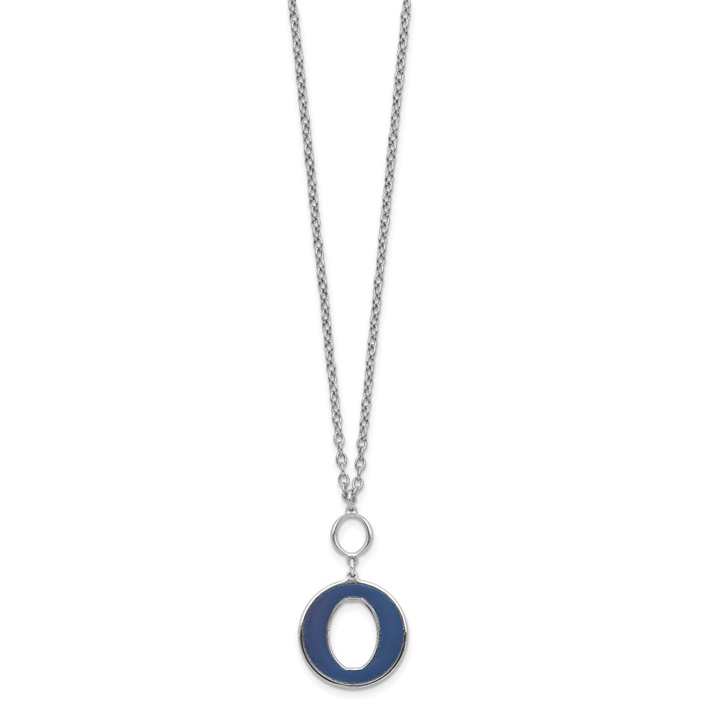 Sterling Silver Rhodium-plated 18in w/2in ext Blue Enamel Circle Necklace