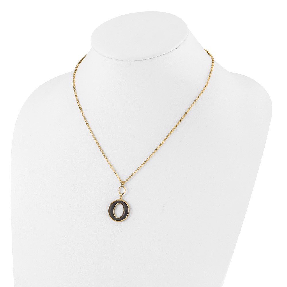 Sterling Silver Gold-plated 18in w/2in ext Black Enamel Circle Necklace