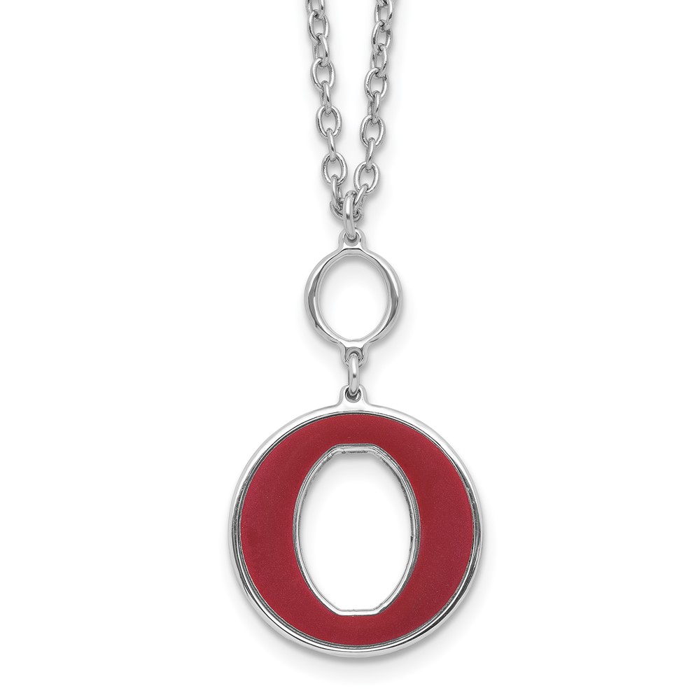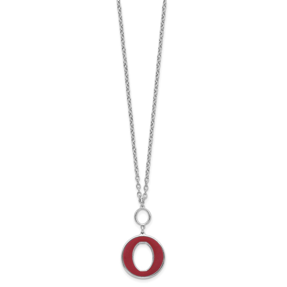 Sterling Silver Rhodium-plated 18in w/2in ext Red Enamel Circle Necklace