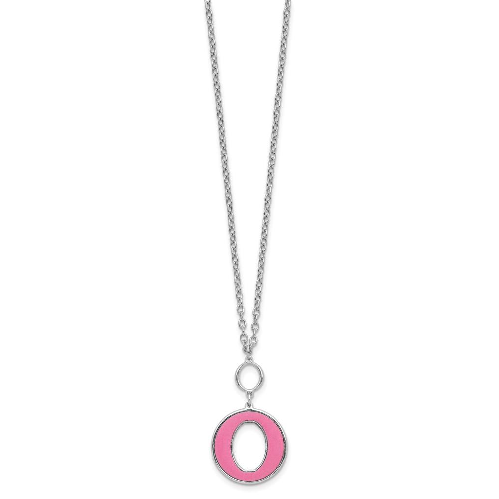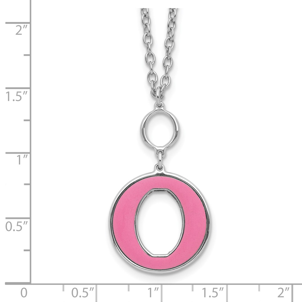 Sterling Silver Rhodium-plated 18in w/2in ext Pink Enamel Circle Necklace
