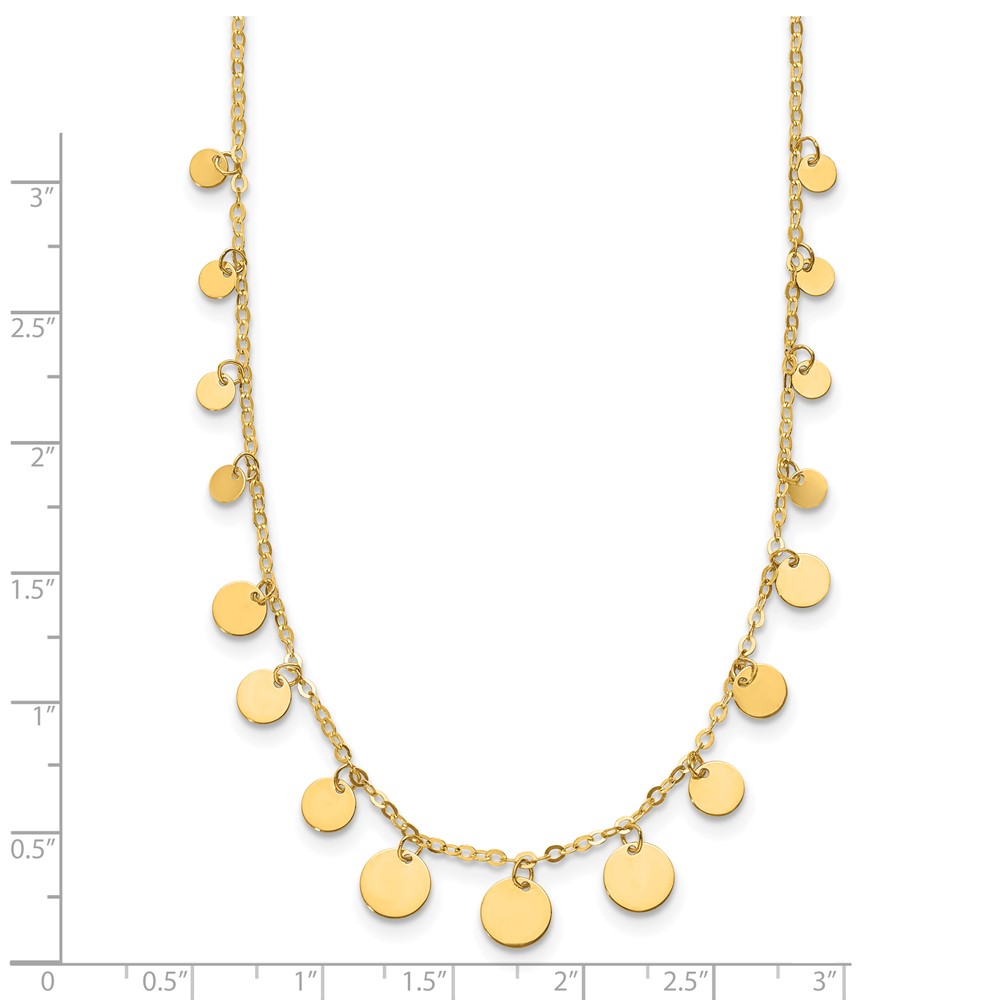 Herco 14K Polished Graduated Circle Disc Station 16 Inch with 2 Inch Extension Necklace