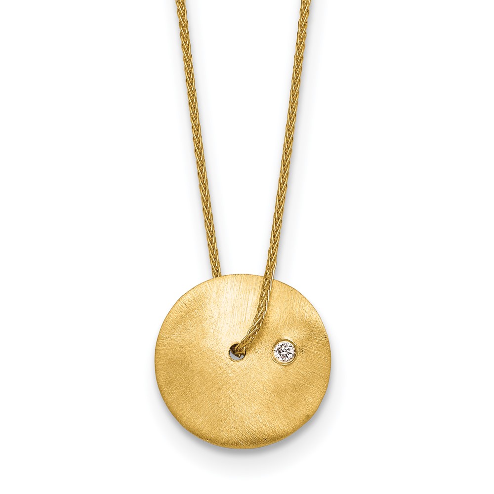 Herco 14K Satin Diamond Disc 16 Inch with 2 Inch Extension Necklace